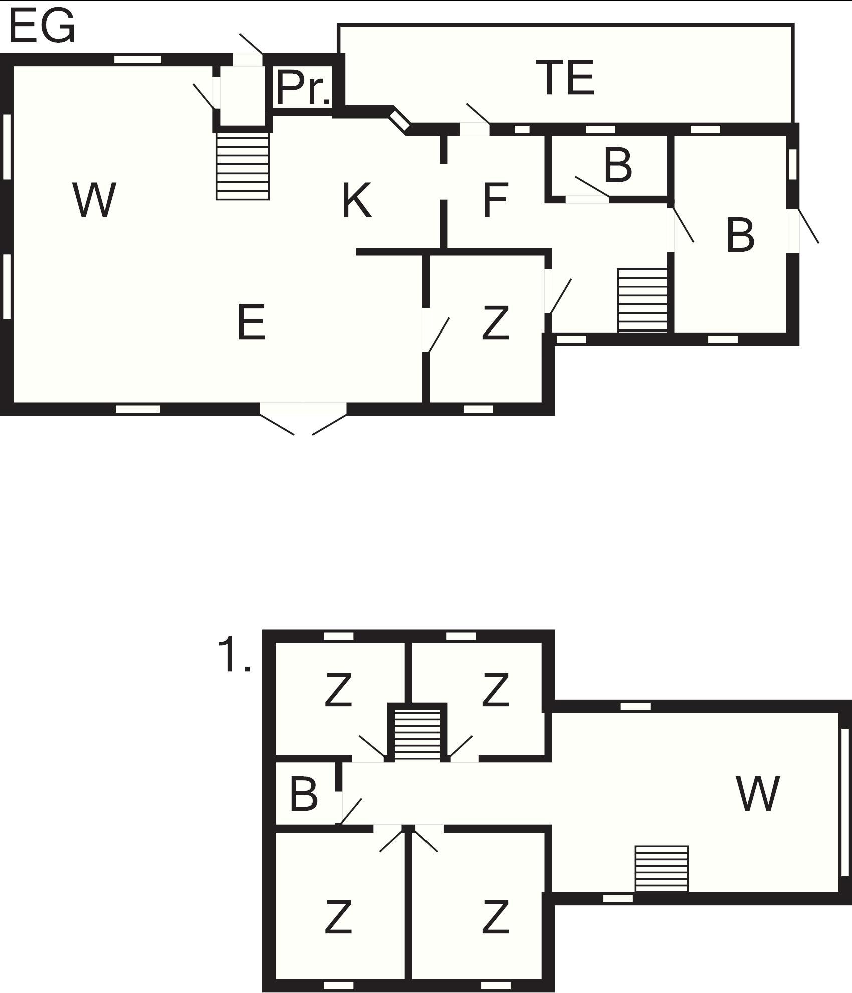 5 Schlafz.: (1DB)+(1DB)+(1DB)+(1DB)+(1DB), Kinderbett