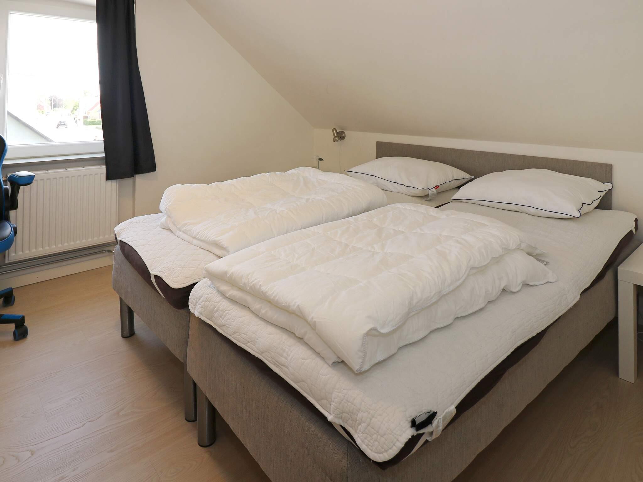 Im Obergeschoss bietet das erste Stockwerk noch mehr Platz: ein zweites Wohnzimmer mit einer gemütlichen Nische zum Entspannen oder Lesen. Es gibt außerdem zwei Doppelzimmer und zwei weitere Schlafzimmer mit Drei- oder Vierbettzimmern, sodass auch größere Familien oder Freundesgruppen problemlos untergebracht werden können. Ein Gäste-WC und weitere Terrassen bieten zusätzlichen Komfort und Möglichkeiten zum Leben im Freien. Mit seinem durchdachten Design, den zahlreichen Gemeinschaftsräumen und der unschlagbaren Lage in Meeresnähe ist dieses Ferienhaus eine fantastische Wahl für alle, die in Øster Hurup sowohl Freizeit als auch Geselligkeit suchen.