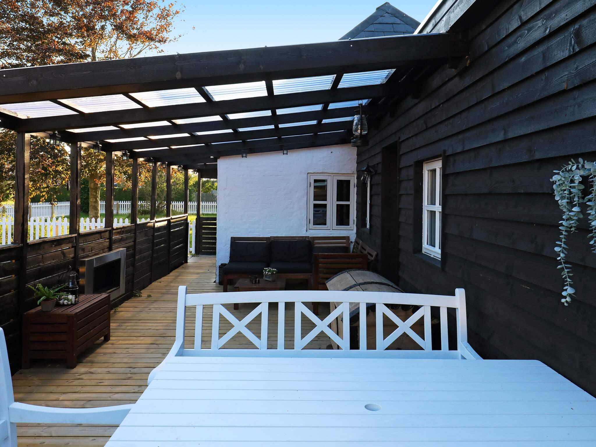 Nebenan auf dem Grundstück steht zudem ein 40 m2 großer Annex, ausgestattet für den Freizeitspaß mit Tischkicker, Darts, TV mit Chromecast, Wärmepumpe, Waschmaschine. Im Annex stehen außerdem zwei weitere Schlafplätze bereit.
