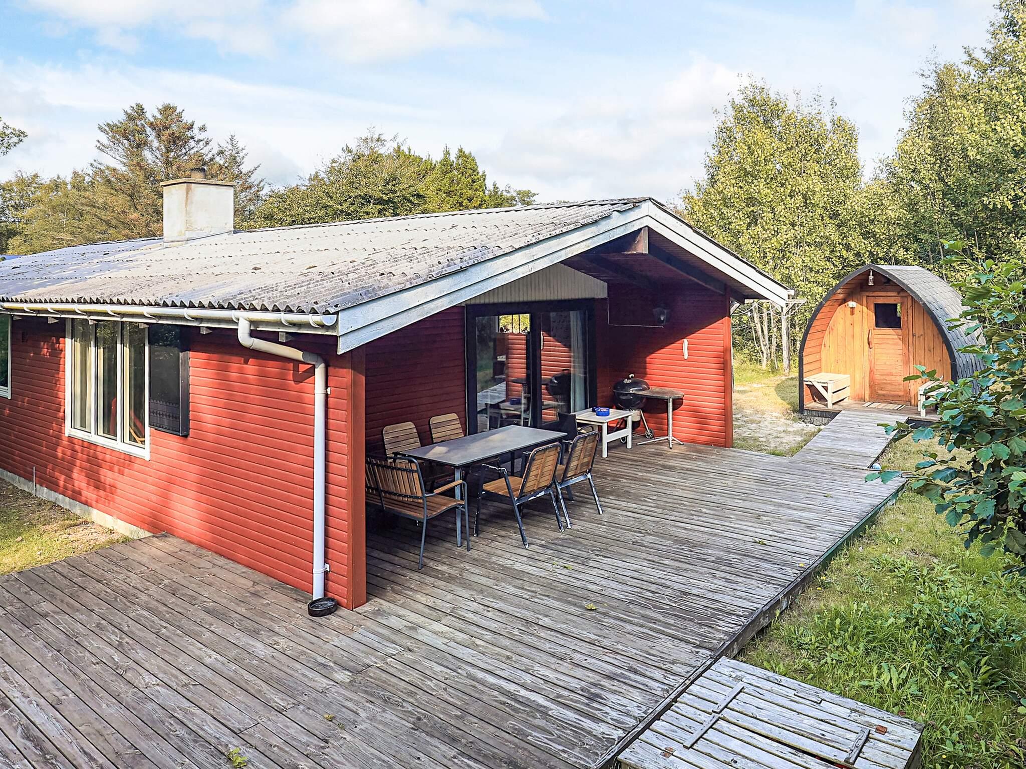 Traditionelles Ferienhaus etwa 1 km nördlich des Ferienortes Ålbæk aber nur ca. 300 m von den Dünen und dem kinderfreundlichen Badestrand entfernt. Das Haus ist eher einfach aber dennoch gemütlich ausgestattet und bietet zwei Schlafzimmer mit jeweils zwei Schlafplätzen, wobei das Doppelbett etwas schmaler als gewöhnlich ist. Separate Küche im Haus. Sauna im Außenbereich des Hauses (siehe Foto).