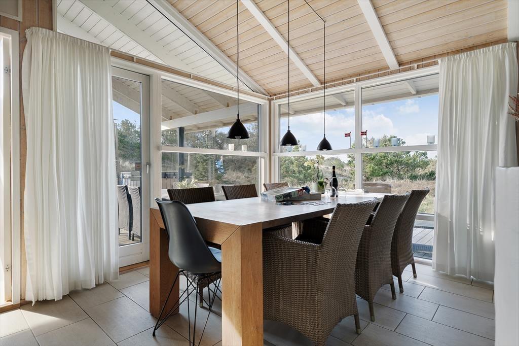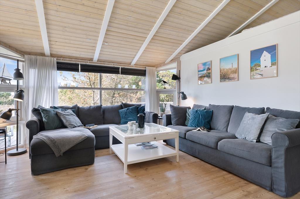 Dank der Nähe zum Strand und des privaten Pfads, der dich und deine Familie direkt ans Wasser führt, werdet ihr gleich mehrmals täglich an das Kattegat spazieren. Unabhängig von Wetter und Jahreszeit ist es ein exklusives Erlebnis, so nah an der attraktiven Küstenlinie der Bucht von Ålbæk zu wohnen. Zu den schnell erreichten Naturperlen zählen das Waldgebiet Bunken Klitplantage und die gigantische Wanderdüne Råbjerg Mile. Ein paar Kilometer weiter begrüßt dich der Golfklubben Hvide Klit mit Dänemarks nördlichstem Golfplatz. Die Haltestelle Bunken Station liegt rund einen Kilometer abseits des Ferienhauses. Von hier aus brichst du per Regionalbahn zu einer gemütlichen Tour nach Skagen auf, wo dich interessante Museen, gute Lokalitäten und malerische Gassen in Empfang nehmen.