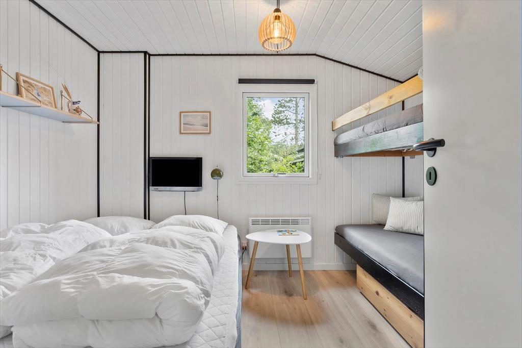 Lyngstien endet als Sackgasse, und am Ende der Straße führt ein Pfad durch die Dünenlandschaft direkt hinunter zum Kattegat und dem weißen Sandstrand. Das Wasser ist hier an der jütländischen Ostküste seicht, und sowohl Kinder als auch Erwachsene können sich darauf freuen, am Ufer zu spielen, zu planschen, zu baden und die Zeit zu genießen. Wenn du einen gemütlichen Spaziergang unternehmen möchtest, kannst du der Küste bis zum Hafen von Ålbæk folgen – vielleicht um ein Eis oder Mittagessen direkt an der Kaimauer zu genießen – und auch das Zentrum von Ålbæk ist leicht zu erreichen. In der Nähe des Ferienhauses befinden sich zudem der Tierpark Farm Fun und die Ålbæk Klitplantage, und in zehn Minuten erreichst du den nächsten Golfplatz, während Skagen nur 20 Minuten mit dem Auto entfernt ist.