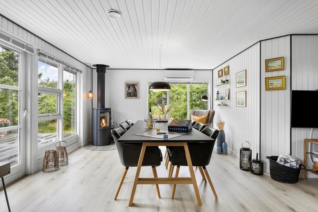 Die Atmosphäre im Inneren des Ferienhauses ist hell und leicht, das 2021 erfolgreich renoviert wurde. Die drei Schlafzimmer sind alle gemütlich zum Schlafen, und in einem der Zimmer hängt sogar ein Flachbildfernseher an der Wand, falls du den Tag mit etwas Fernsehen ausklingen lassen möchtest. Im Wohnzimmer gibt es ebenfalls die Möglichkeit, sich für Filmabende auf der Sofaecke zu versammeln, es sei denn, ihr verbringt die Zeit mit Kartenspielen, Kreuzworträtseln und gemütlichen Gesprächen. Das Wohnzimmer ist sowohl mit einem Kamin als auch einer Tür zur Terrasse ausgestattet, sodass es zu jeder Jahreszeit angenehm ist, sich hier ufzuhalten. In der offenen Küche findest du alle notwendigen Einrichtungen, um Mahlzeiten zuzubereiten.