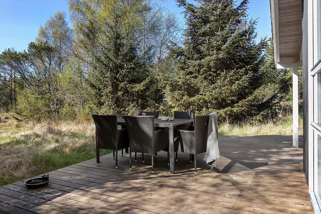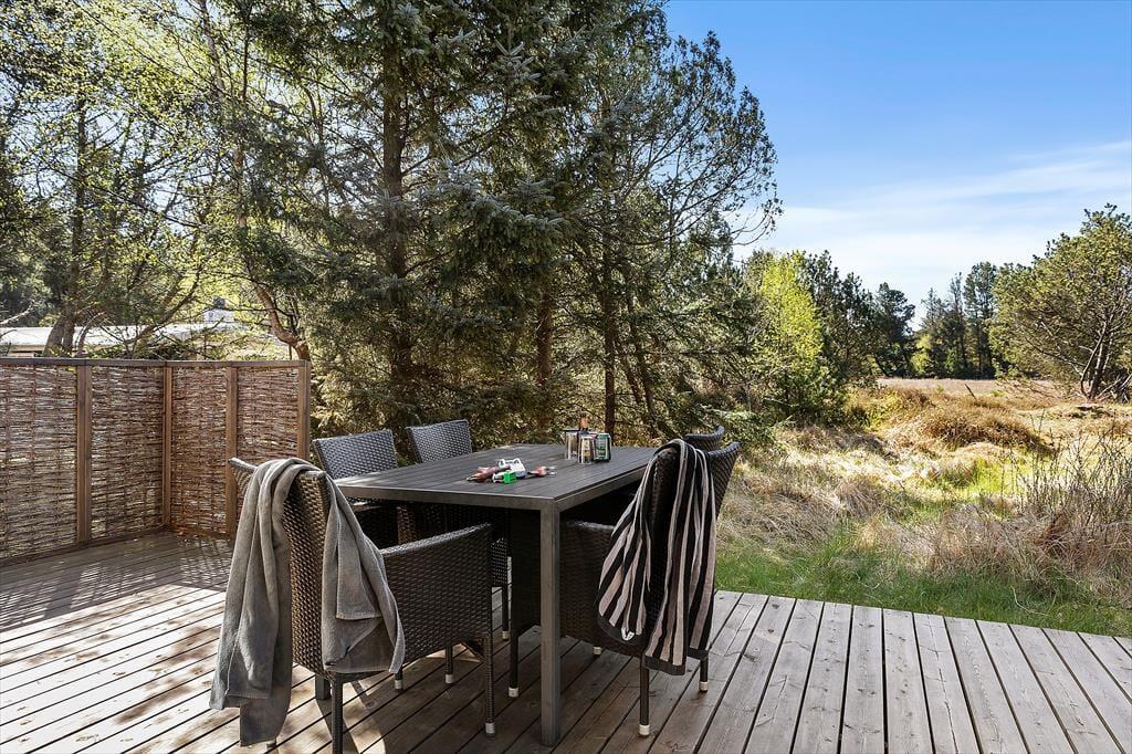 Draußen erwartet dich das Ferienhausleben von seiner ruhigsten Seite. Das Haus liegt auf einem uneinsehbaren Naturgrundstück mit hohen Bäumen und grüner Bepflanzung, die Privatsphäre und das Gefühl vermitteln, mitten in der Natur zu sein. Auf der Terrasse kannst du deinen Morgenkaffee im Sonnenschein und Vogelgezwitscher genießen, ein gutes Buch auf der Liege lesen oder alles für einen gemütlichen Grillabend unter freiem Himmel vorbereiten. Mehrere Terrassenbereiche bieten dir sowohl sonnige als auch schattige Plätze – je nach Stimmung und Tageszeit. Egal ob du entspannen oder draußen mit den Kindern spielen möchtest, hier findest du den passenden Rahmen. Es ist einer dieser Orte, an dem die Schultern automatisch entspannen und der Alltag in den Hintergrund tritt – zugunsten von Nähe, Natur und echter Erholung.
