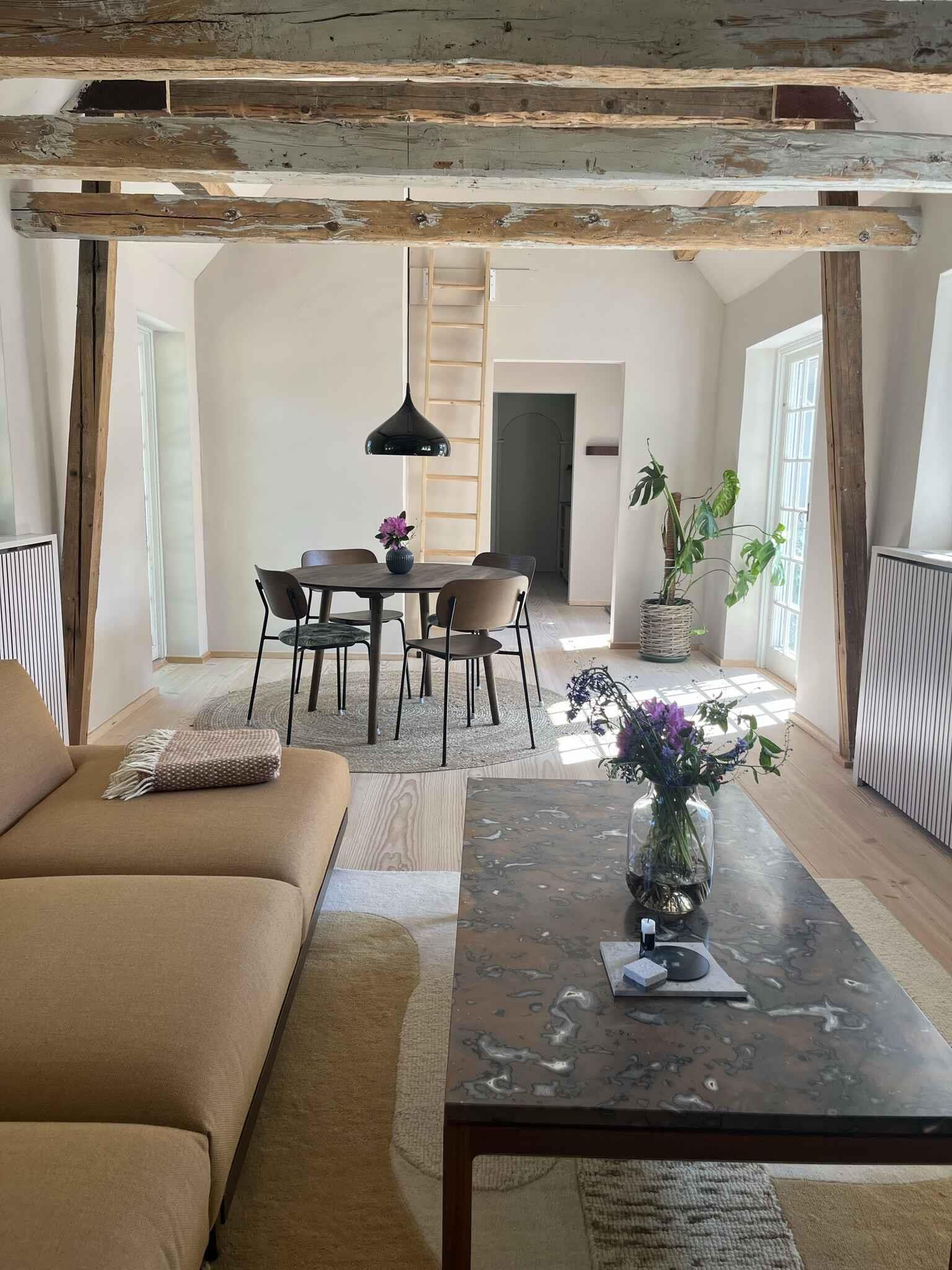 Willkommen im alten Gutshof in Ålsgårde, wo historischer Charme auf modernen Komfort trifft. Genießen Sie die Ruhe im schönen Wohnzimmer mit Blick in die Natur oder erkunden Sie Wald und Strand. Der perfekte Ort zum Entspannen.