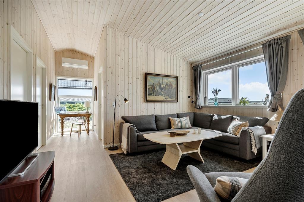 Mit den 200 Meter zum Strand brauchst du nur die Dünen durchqueren und schon bist du an den blauen Wellen der Nordsee. An Sommertagen ist ein Bad in dem salzigen Wasser erfrischend und wenn die Natur in der Nebensaison ihre Kraft zeigt, kannst du diese mit einer frischen Tour an der brausenden Wasserkante erleben. Das Ferienhaus liegt in Aargab zwischen der Nordsee und dem Ringkøbing Fjord, und die hügelige westjütländische Dünenheide lädt zu Wanderspaziergängen oder Fahrradausflügen ein. Für die Jüngsten gibt es viel Platz, alle können die Umgebung erkunden, und es ist richtig schön, einen Drachen am Strand steigen zu lassen. In Hvide Sande, nur fünf Autominuten von der Adresse entfernt, herrscht reges Treiben. Hier findest du Geschäfte, Cafés und gute Restaurants, aber auch Supermärkte für deinen Einkauf. Surfausrüstung oder Angelrute dabei? Den ganzen Tag kannst du am oder auf dem Wasser verbringen, denn in der Gegend gibt es viele Angelseen und Angelplätze an der Schleuse in Hvide Sande, und es gibt Surfspots sowohl am Fjord als auch am Meer.