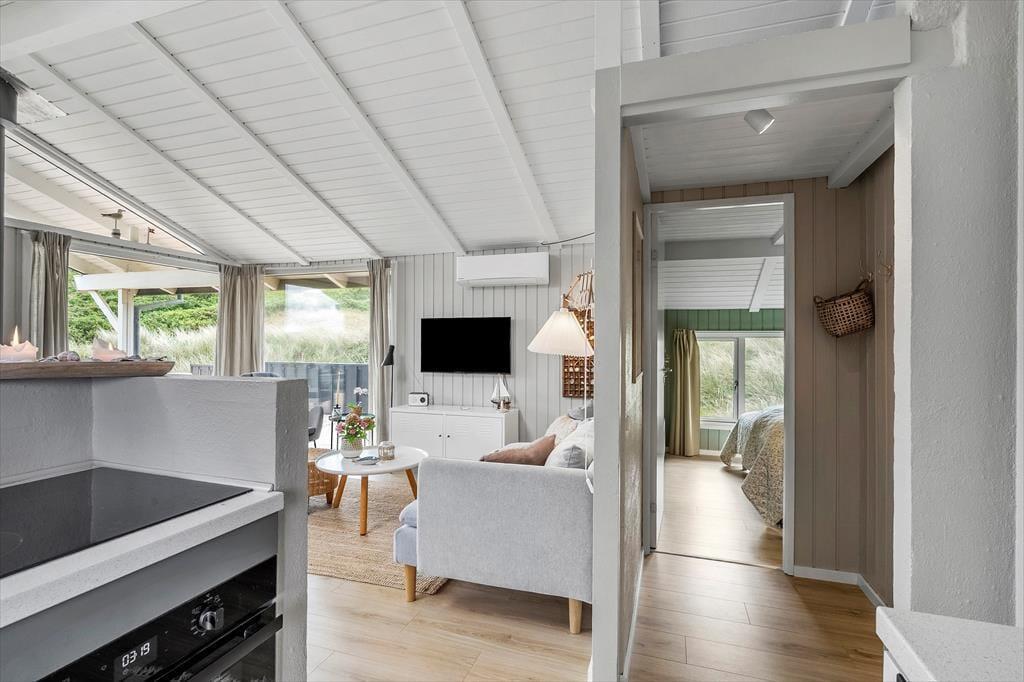 Das Ferienhaus ist 72 m² groß und steht seit 1980 in der Dünenlandschaft von Bjerregård. Innen sind Küche und Wohnzimmer miteinander verbunden, sodass das Kochen ganz einfach in das gemeinsame Beisammensein integriert werden kann. Am Abend könnt ihr es euch im Sofa-Bereich gemütlich machen und die Ruhe genießen – vielleicht mit einer spannenden Serie oder einem guten Film im Fernsehen, dazu ein paar Decken, Snacks und Kerzen für die Extraportion Hygge. Am anderen Ende des Hauses befinden sich drei schöne Schlafzimmer mit insgesamt fünf Schlafplätzen sowie ein Badezimmer mit eigener Sauna. Neben der Haustür habt ihr Zugang zu einem kleinen Hauswirtschaftsraum, falls ihr Waschmaschine und Trockner nutzen möchtet. In den letzten Jahren wurde das Haus teilweise renoviert – unter anderem mit neuem Boden, einer neuen Küche, einer überarbeiteten Schornsteinanlage sowie neuen Möbeln, darunter neue Betten und neue Sofas.