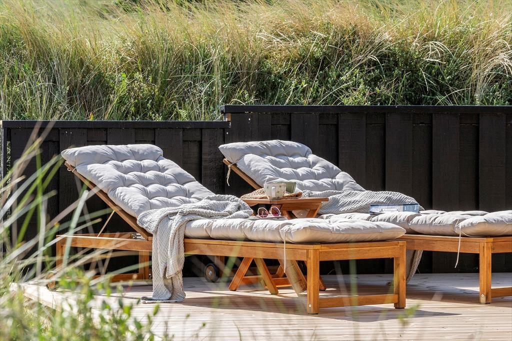 Wenn die Sonne scheint und sich echtes Feriengefühl breitmacht, ist die südlich ausgerichtete Terrasse der perfekte Treffpunkt. Hier könnt ihr es euch in den Liegestühlen gemütlich machen, ein gutes Buch im Schatten des überdachten Bereichs lesen oder den Grill für ein entspanntes Abendessen unter freiem Himmel anwerfen. Die Terrasse ist gut windgeschützt, sodass ihr selbst bei einer frischen Brise aus Westen in Ruhe sitzen könnt. Für die Kleinsten steht ein Sandkasten bereit, und rundherum lädt das große Naturgrundstück mit Heidekraut, Strandhafer und echter Dünenlandschaft zum Träumen und Genießen ein.