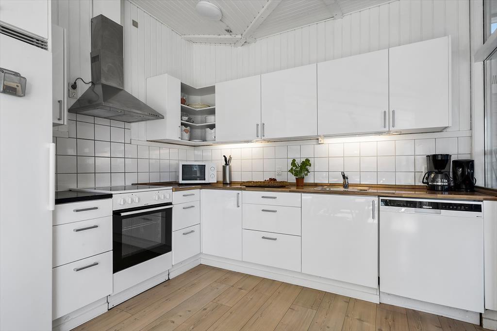 Wohnraum und Terrasse verwöhnen mit einem reizvollen Ausblick auf die äußerste Dünenreihe Aargabs. Der Ausblick erinnert Sie zu jeder Zeit daran, wie angenehm nah Sie am Strand wohnen. Es dauert nur wenige Minuten, bis Sie oben auf den Dünen stehen und weit über die Nordsee blicken. Am Strand können Sie nach Herzenslust baden, mit den Kindern im warmen Sand spielen, Ihren Drachen steigen lassen und lange Spaziergänge unternehmen. Holmsland Klit ist eine schmale Nehrung zwischen Nordsee und Ringkøbing Fjord. Das Wasser ist zu beiden Seiten schnell erreicht. Daher gilt die ausgesprochen schöne Gegend als Eldorado für Angler, Windsurfer, SUP-Boarder und andere Wassersportler. Bei Radfahrern und Wanderern ist die Gegend ebenfalls sehr beliebt. Dank der Nähe zum interessanten Fischereihafenort Hvide Sande, können Sie Ihre Urlaubstage problemlos mit einem Restaurantbesuch oder einem großen Eis am Hafen ausklingen lassen.
