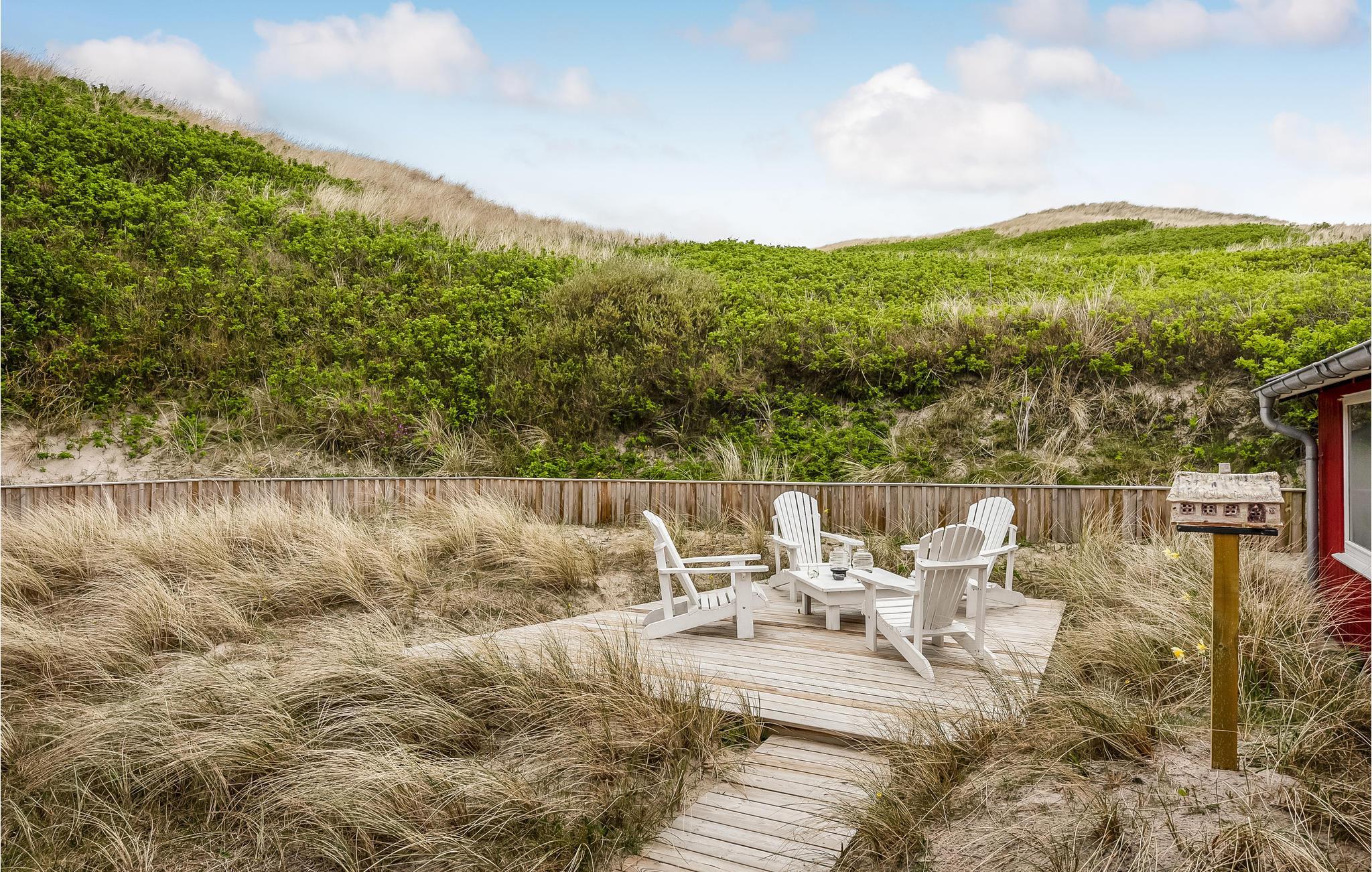 Gemütliches Ferienhaus mit fantastischer Lage. Es verfügt über eine schöne überdachte Veranda. Das Haus liegt am Ende eines ruhigen Sommerhausweges mitten in den Dünen. Durch die direkte hohe Dünenlage lassen sich Sandverwehungen auf der Terrasse nicht vermeiden, kurzum Sie sind der Nordsee und der rauhen Natur ganz nahe. Vom Fahnenmast ist die Aussicht auf den Fjord gorßartig. Das Haus wurde 2008 renoviert und enthält eine moderne Küche, direkt davor liegt die Terrasse, von der aus Sie eine fantastische Aussicht auf die umliegende Dünenlandschaft haben. Das Haus verfügt über ein hübsches Bad mit Whirlpool und Infrarotsauna, zwei kleine Schlafzimmer und ein Esszimmer mit herrlichem Lichteinfall. Ein Perle von Ferienhaus in der Nähe vom Strand, guten Surfbedingungen und dem Fischerort Hvide Sande.