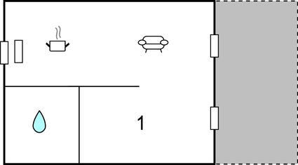 Badezimmer (nr. 1) - WC. Warmes und kaltes Wasser. Dusche