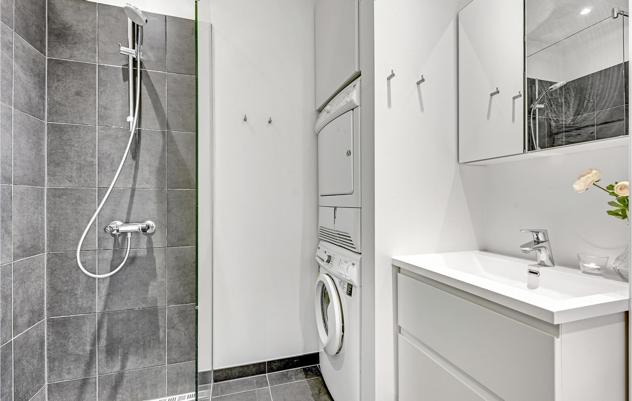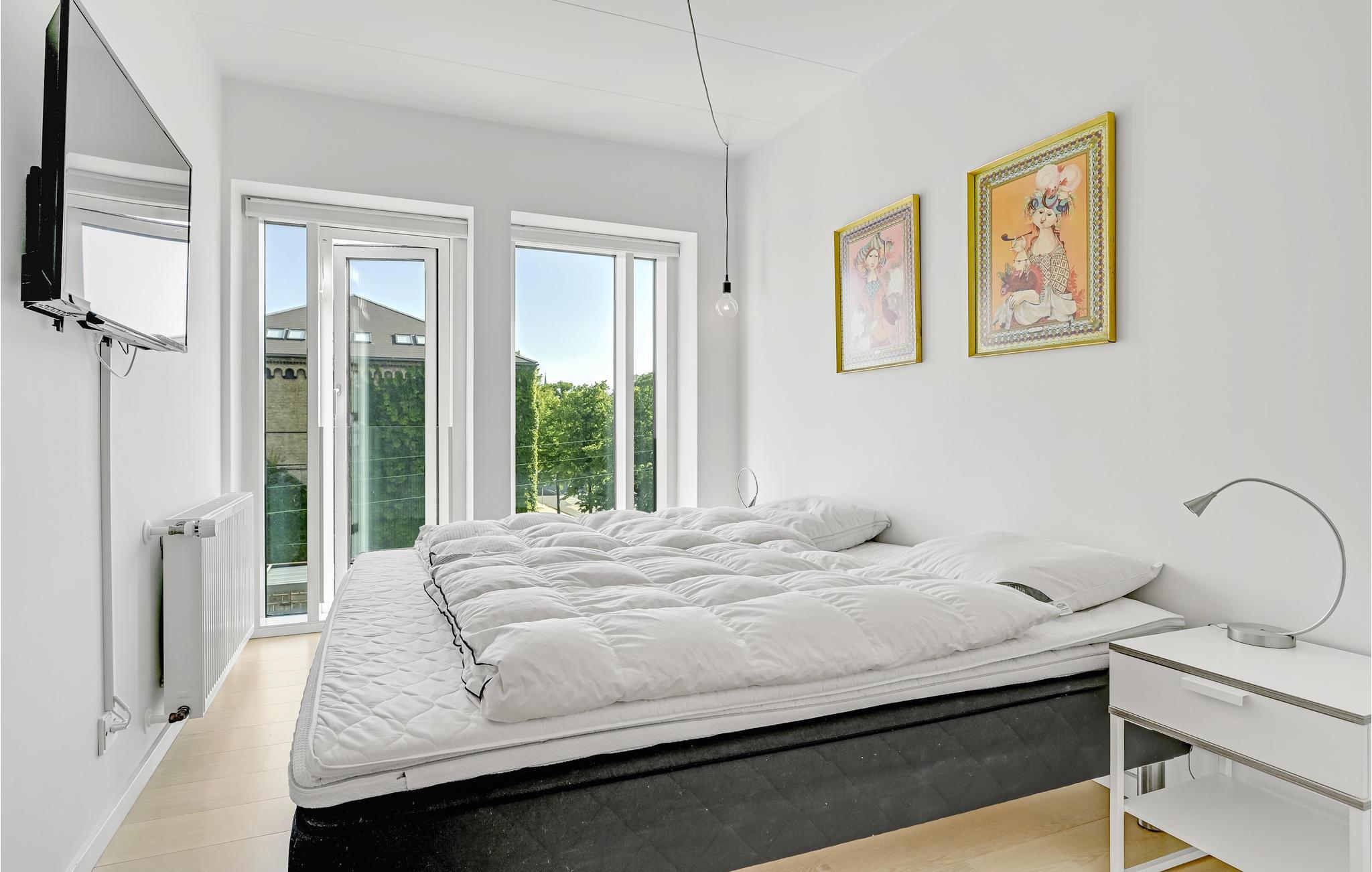 Diese stilvolle Ferienwohnung in einem gepflegten Neubau bietet Ihnen eine ideale Basis für Ihren Aufenthalt in Aarhus. Genießen Sie gemeinsame Stunden beim Kochen, Essen oder Filmschauen im lichtdurchfluteten Wohnraum. Die helle und moderne Einrichtung sorgt für ein angenehmes Ambiente, während die große gemeinschaftliche Dachterrasse auf der obersten Etage einen fantastischen Panoramablick über die Stadt bietet – perfekt für entspanntes Verweilen oder gemeinsame Mahlzeiten.