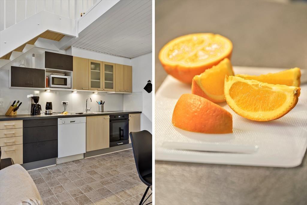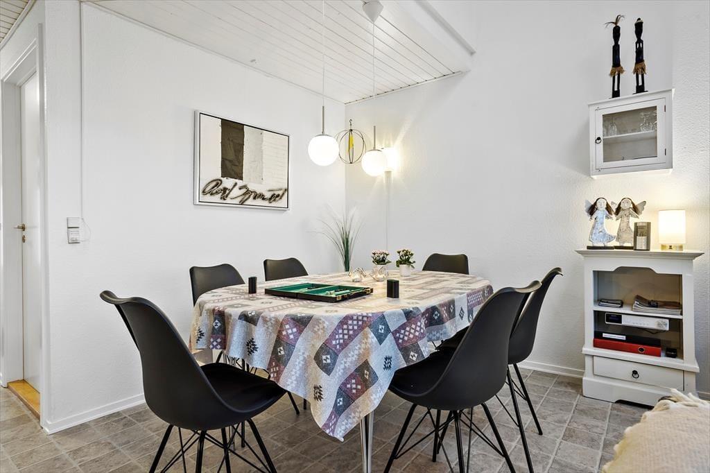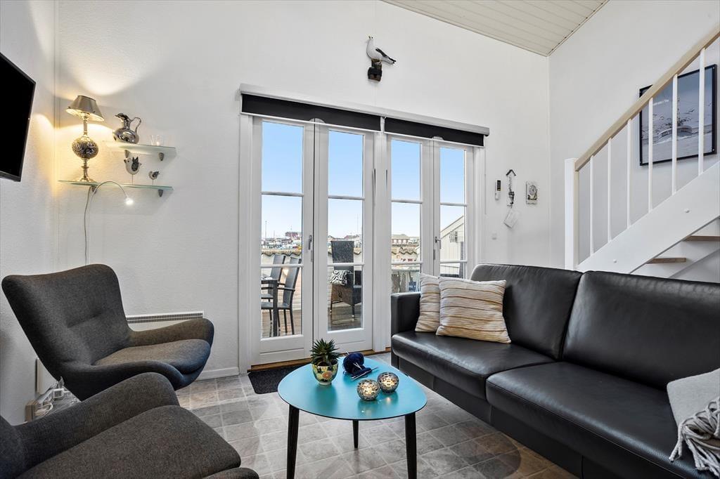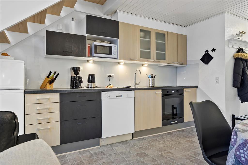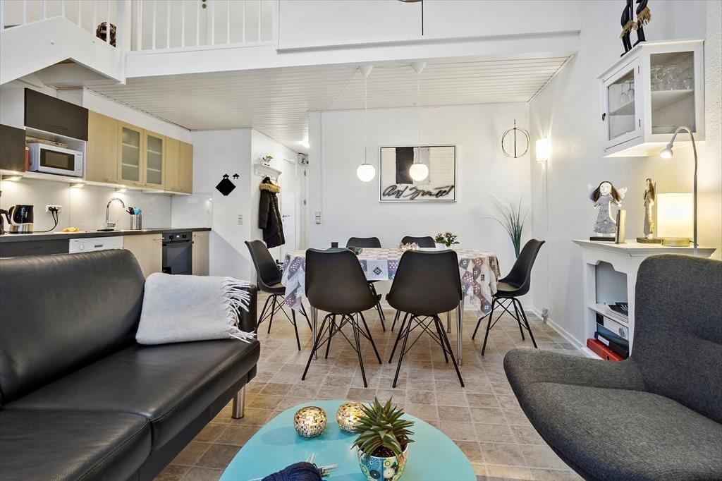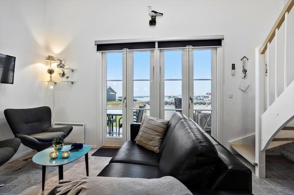 Diese gemütliche Wohnung ist ideal für einen Urlaub mit Platz für bis zu 6 Personen. Wenn Sie eintreten, erwartet Sie eine helle und einladende Atmosphäre, in der Komfort an erster Stelle steht. Küche und Wohnzimmer verschmelzen zu einem offenen und funktionalen Raum, in dem Sie angenehme gemeinsame Momente verbringen können. Hier ist Platz für Gesellschaftsspiele und gute Gespräche am Esstisch, oder zum Entspannen auf dem Sofa nach einem langen Tag an der frischen Luft. Die großen Fenster sorgen für viel natürliches Licht und bieten einen herrlichen Blick auf den Limfjord und die maritime Umgebung der Gegend.