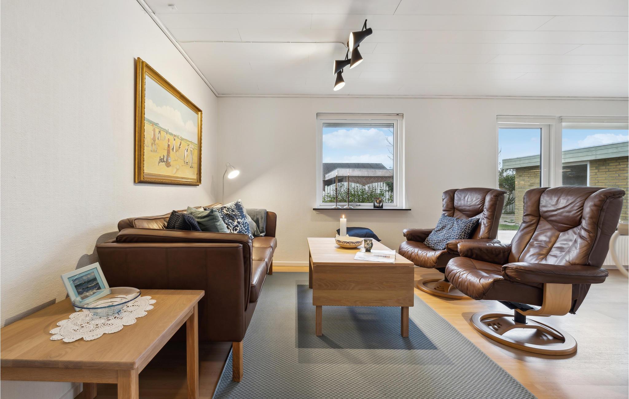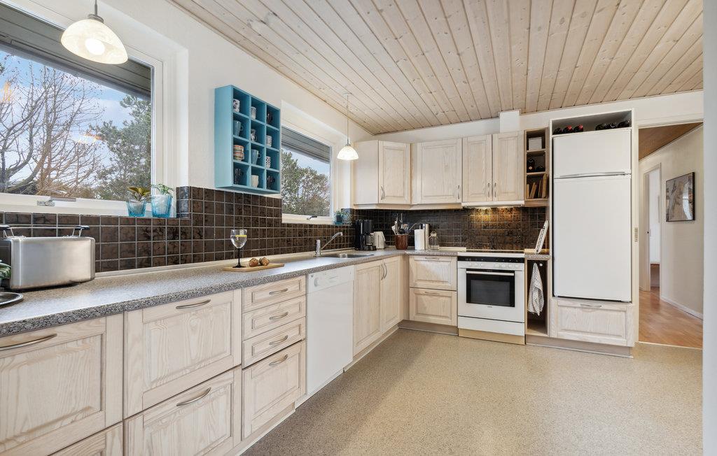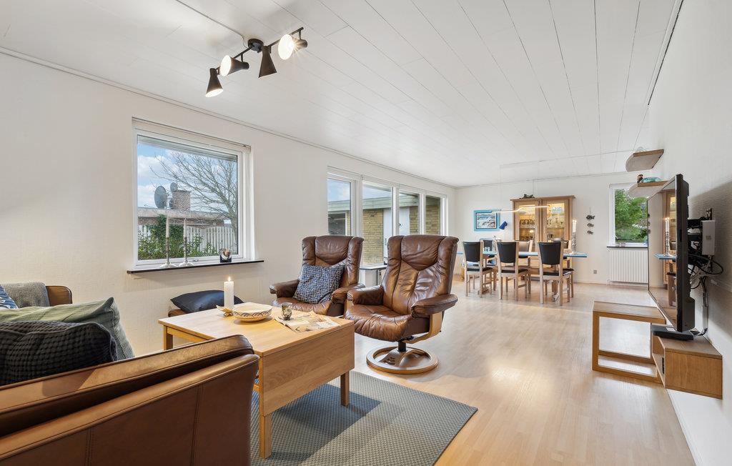 Freuen Sie sich auf Ihren Aktiv- und Natururlaub in Nordjütland und fühlen sich in diesem funktionalen Haus wie zuhause. Hier haben Sie nicht nur viel Platz, sondern können sich in Ihrem Ferienalltag entspannen. Sie finden hier eine gute Ausstattung vor, die Sie zum gemeinsamen Kochen, Spielen oder einfach Beine hochlegen einlädt. Vom Wohnzimmer gelangen Sie auf die geflieste Terrasse, auf der Sie die Sonne genießen können und Ihren Kindern beim Spielen auf dem Rasen zusehen können.