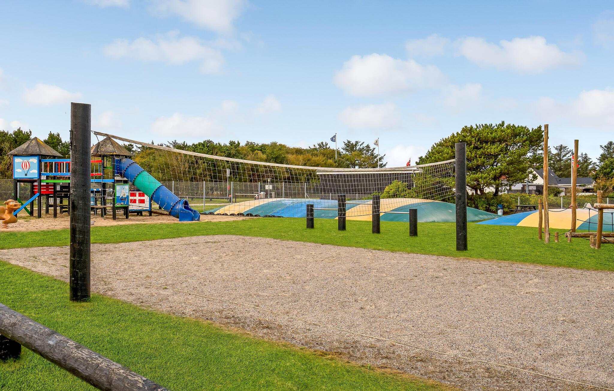 Das Ferienhaus befindet sich auf Krik Vig Camping. Somit haben Sie Zugang zu einem Aktivitätsraum mit Tischtennis und Kicker, einem Ballspielplatz, Kinderspielplatz und einer Hüpfburg.