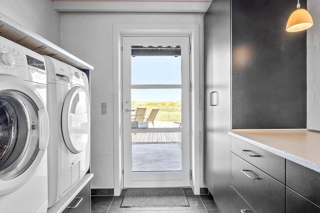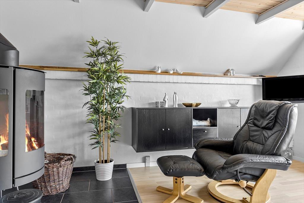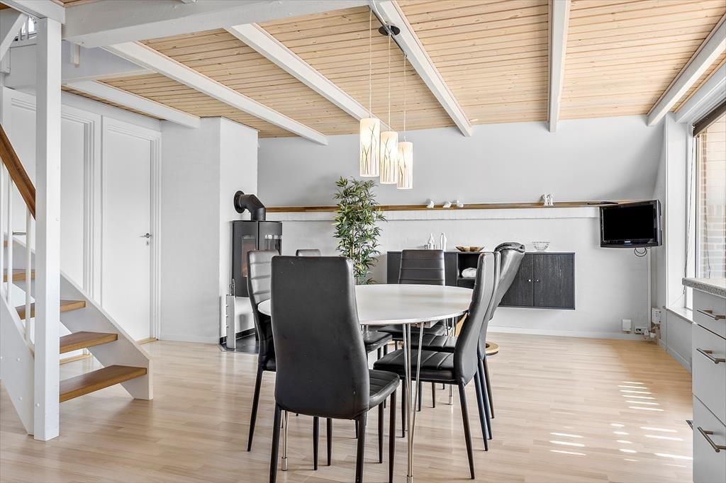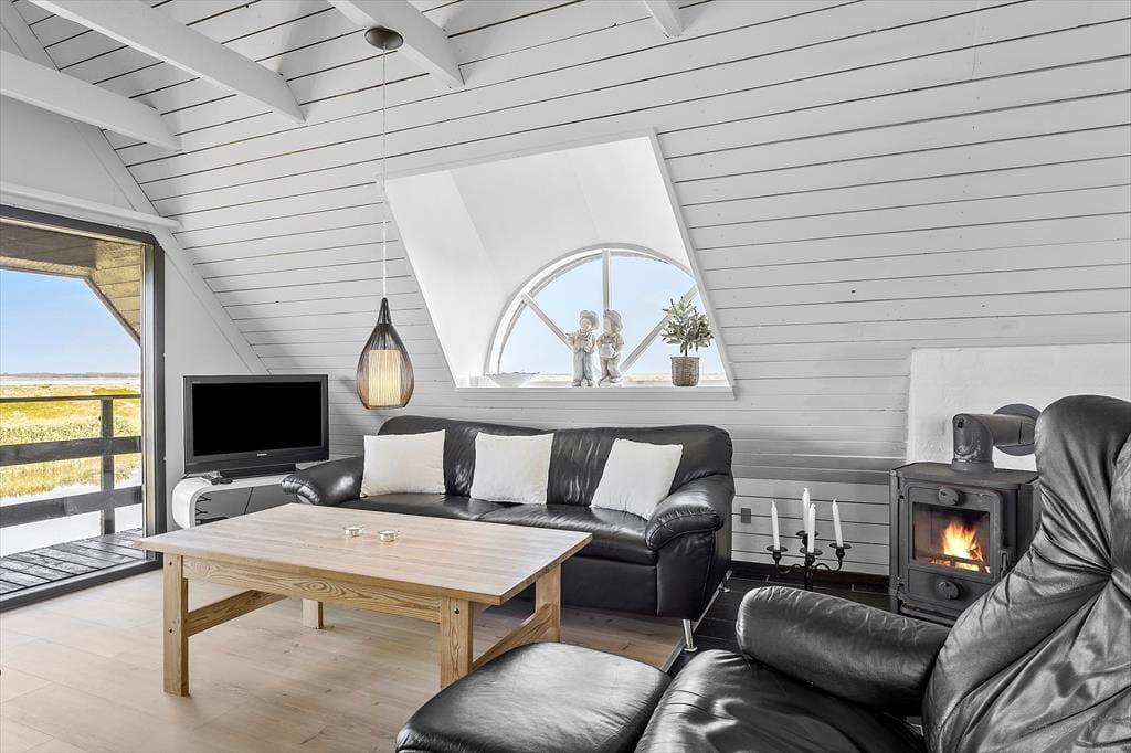 Das Ferienhaus auf Mågevej 43 strahlt Gemütlichkeit und Funktionalität aus. Im Inneren erwartet dich ein helles und einladendes Wohnzimmer mit bequemen Möbeln und einem knisternden Kaminofen, der an kühlen Abenden schnell zum Mittelpunkt wird. Dank der intelligenten Raumaufteilung fühlen sich hier Familien und Freundesgruppen gleichermaßen wohl. Die Wärmepumpe sorgt zusätzlich zum Kaminofen für angenehme Temperaturen, selbst an kalten Tagen. In der voll ausgestatteten Küche kannst du problemlos Mahlzeiten zubereiten, die gemeinsam am Esstisch genossen werden. Dieses Ferienhaus ist perfekt für erholsame und gemütliche Momente – ein Zuhause in der Ferne.