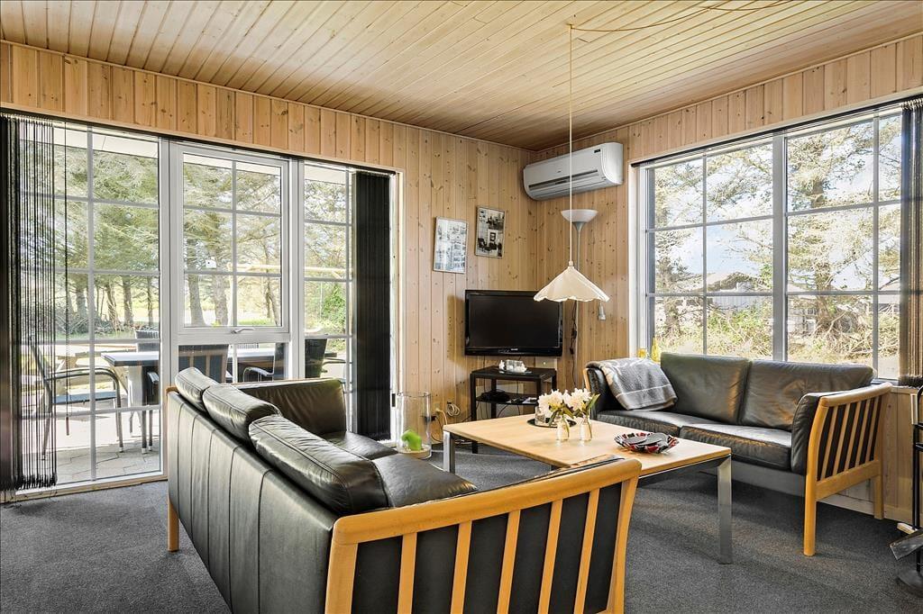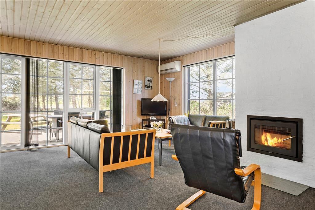 Das Ferienhaus auf Bekkasinvej 6 empfängt dich mit einer warmen und einladenden Atmosphäre. Die Einrichtung strahlt Gemütlichkeit aus, mit feinen Details und einem geräumigen Wohnzimmer, in dem sich die Familie an kühleren Abenden vor dem knisternden Kaminofen versammeln kann. Große Fensterfronten lassen viel Tageslicht herein und bieten einen herrlichen Blick auf die umliegende Natur. Die offene Küche, die in Verbindung mit dem Wohnzimmer liegt, ist sowohl funktional als auch gemütlich eingerichtet, sodass Mahlzeiten in Gesellschaft zubereitet und genossen werden können. Hier findest du schnell zur Urlaubsstimmung und kannst die Ruhe in vollen Zügen genießen.