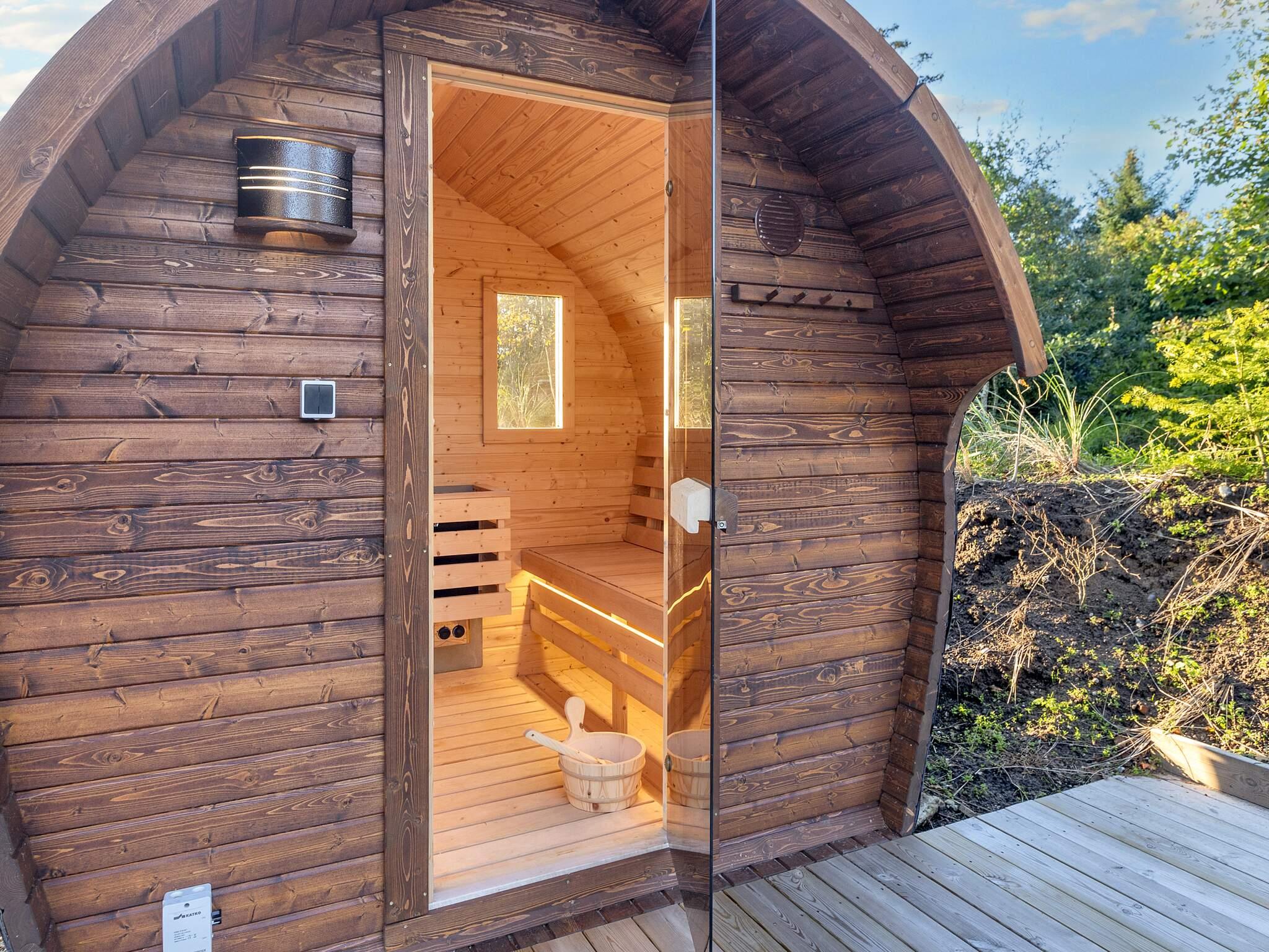 Das Ferienhaus ist modern eingerichtet und verfügt u.a. über eine voll ausgestattete Küche mit Geschirrspüler, Smart-TV für eigene Streaming-Dienste, WLAN, Waschmaschine, Trockner und Fußbodenheizung im gesamten Haus. Draußen finden Sie eine große Terrasse mit Sonnenliegen, Gasgrill, Badezuber für 4 Personen und eine hauseigene Sauna – perfekt zum Entspannen nach einem Tag in der Natur.