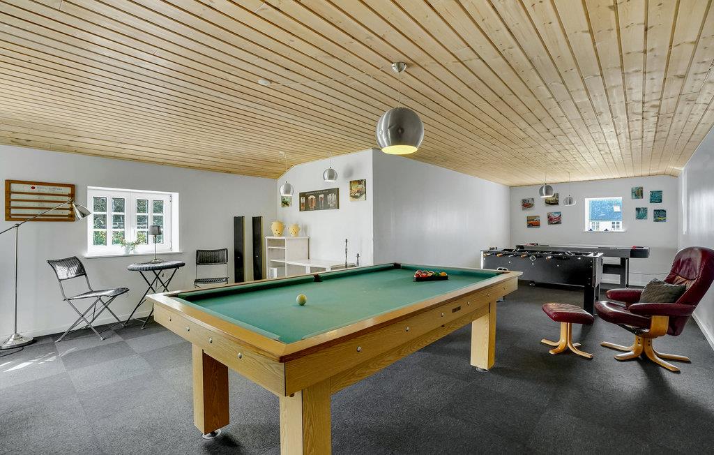 Willkommen in diesem schönen Reetdachhaus in Agger. Das geräumige Haus bietet viel Platz für eine größere Familie oder mehrere befreundete Familien. Genießen Sie die gemeinsame Zeit im großen Wohnraum, wo Sie gemeinsam kochen, essen, spielen und entspannen können. Entspannen Sie nach einem aktiven Tag in der hauseigenen Sauna oder genießen Sie ein Nickerchen im Alkoven in der ersten Etage. Das Beschäftigungsangebot im schönen Haus und den Nebengebäuden ist vielseitig. Nicht zuletzt finden Sie hier ein Poolhaus mit Swimmingpool und Whirlpool vor, das Badespaß bei jedem Wetter für Groß und Klein verspricht. Ein gutes Unterhaltungsprogramm gibt es auch im zweiten Nebengebäude. Hier können Sie sich mit Billard, Tischkicker und weiteren Spielmöglichkeiten vergnügen.