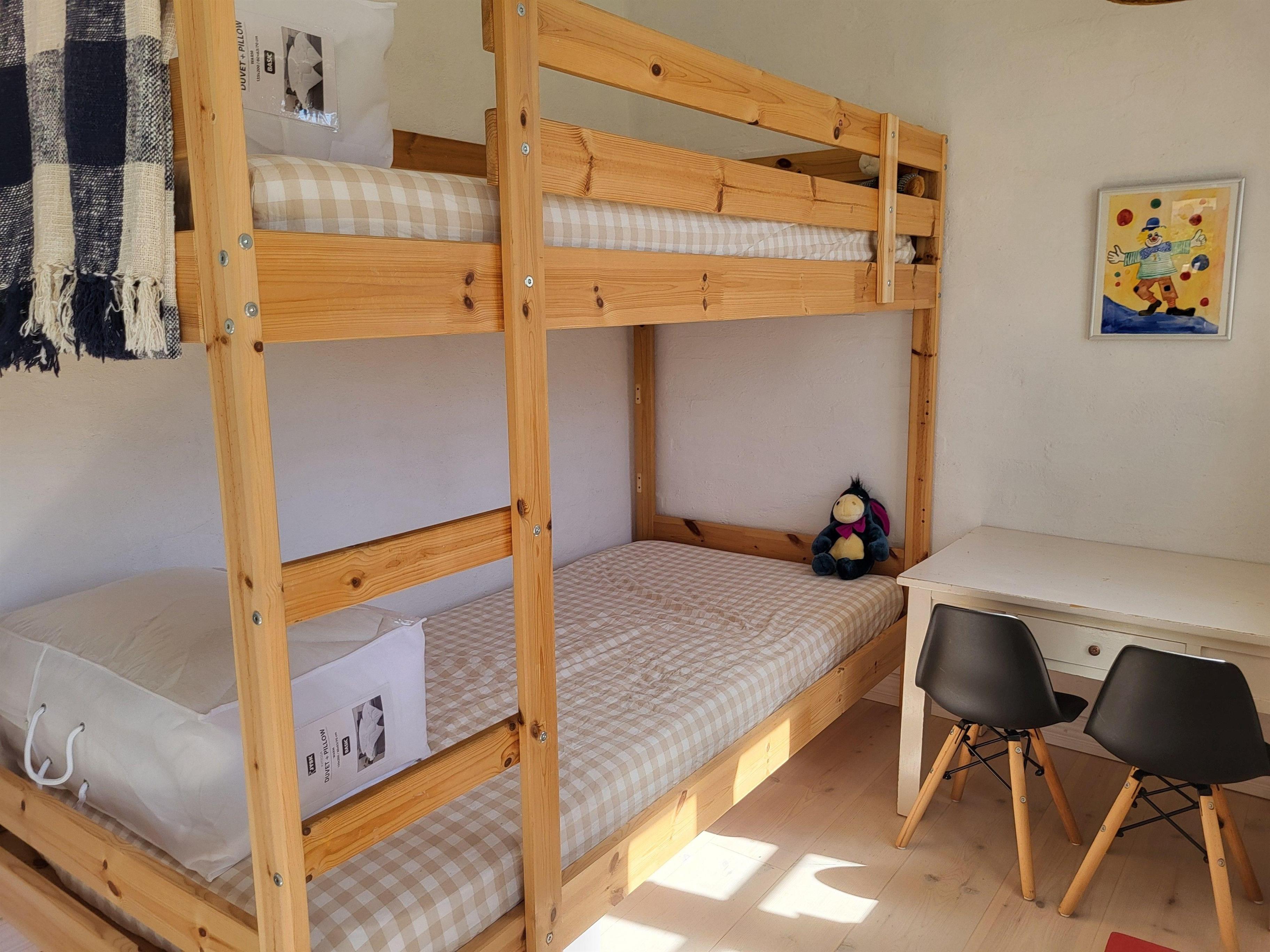 Großzügige Wohnküche mit direktem Zugang zu einer gemütlichen Terrasse. Zwei separate Schlafbereiche, jeweils mit zwei Schlafzimmern und einem Badezimmer, eignen sich für zwei Familien. Gemütliches Wohnzimmer mit Fernseher.