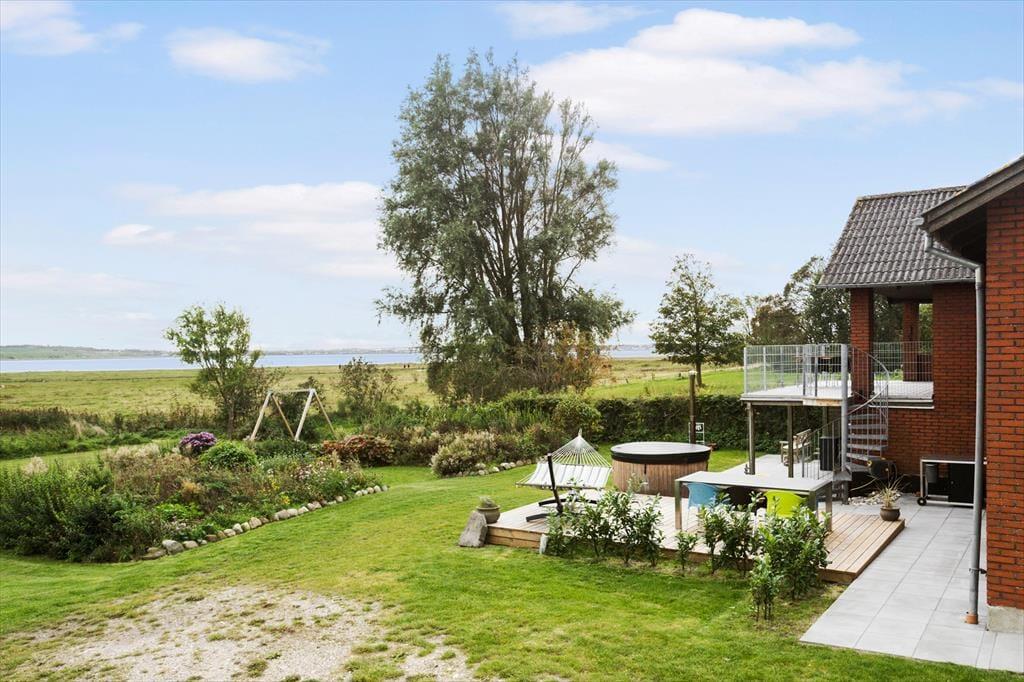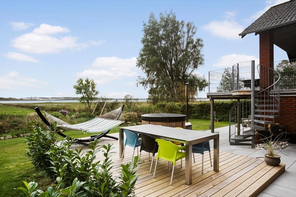 Das Außenbereich dieses Ferienhauses ist ein wahres Juwel, wo Sie inmitten der idyllischen Natur entspannen können. Die großzügigen Terrassen laden dazu ein, den Morgenkaffee zu genießen, während die Sonne über dem Fjord aufgeht, und den Tag mit einem schönen Sonnenuntergang in bester Gesellschaft zu beenden. Das luxuriöse Wildnisbad ist ein besonderes Highlight, in dem Sie im warmen Wasser entspannen können, während Ihr Blick über die ruhigen Gewässer des Limfjords schweift.