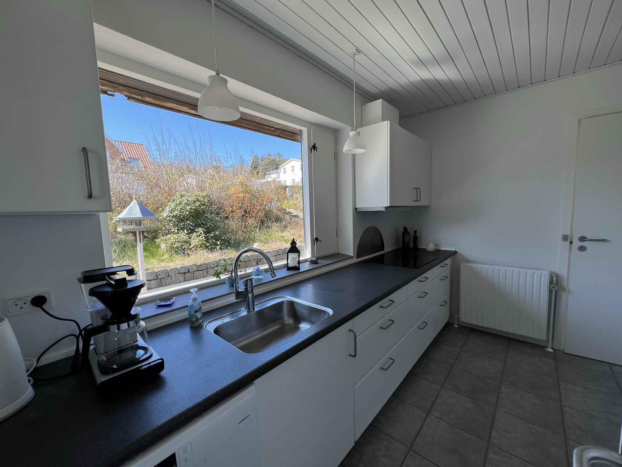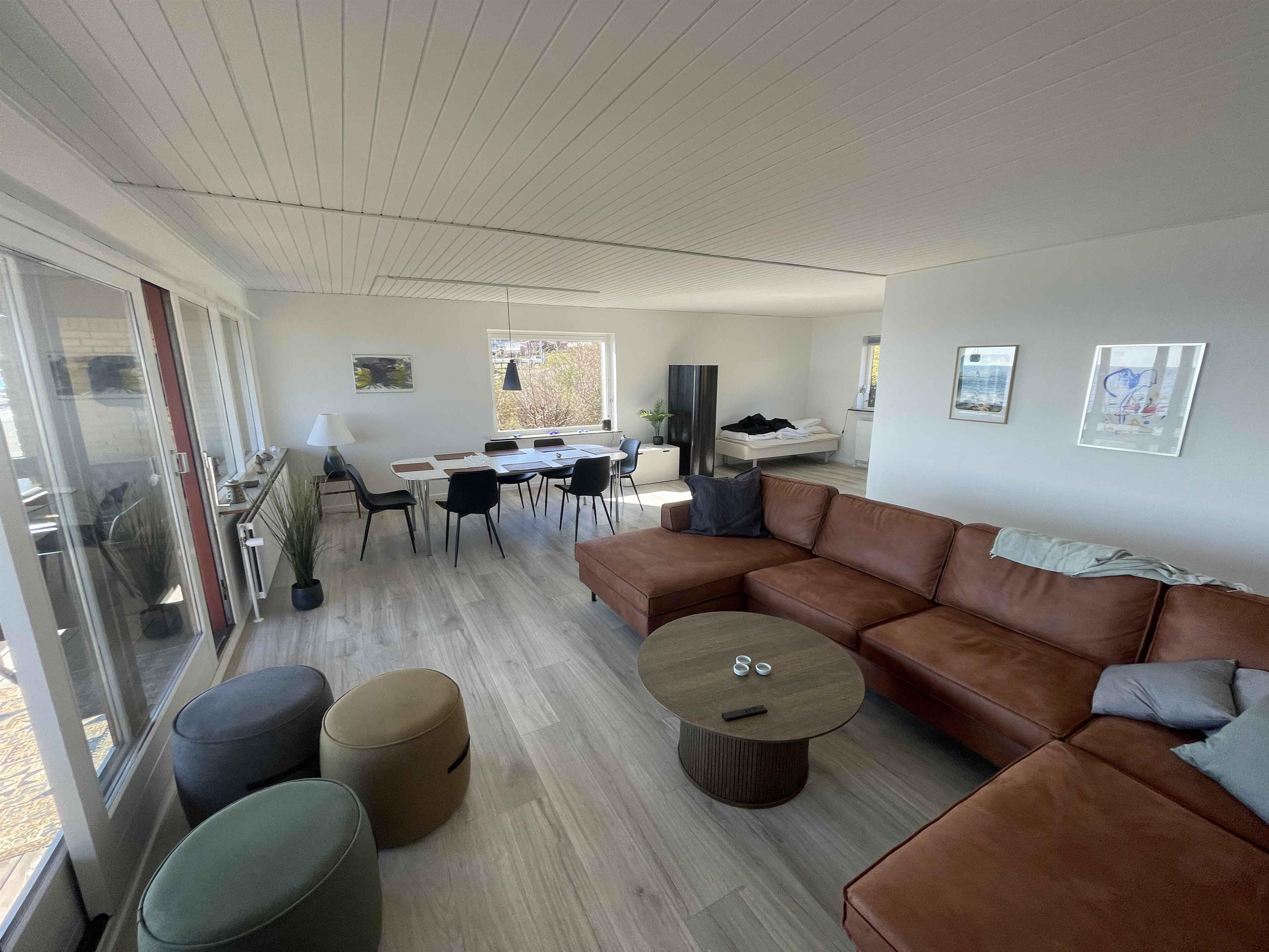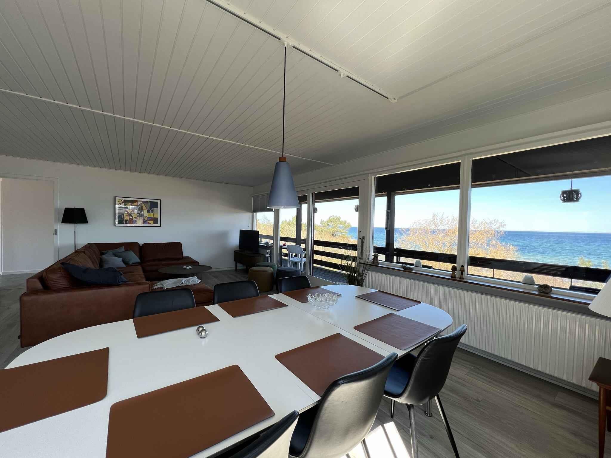 Einzigartige und ungestörte Aussicht auf die Ostsee. Hier wohnen Sie nahe Felsenküste und Sandstrand – mit dem Meer als natürlichem Teil des Urlaubs. Das Haus ist vollständig ebenerdig eingerichtet und wird ausschließlich im Erdgeschoss vermietet (ca. 128 m²). Ein Keller ist vorhanden, gehört jedoch nicht zur Vermietung und ist nicht zum Wohnen bestimmt. Das Innere ist hell und schlicht mit weißen Wänden, Decken und hellen Böden. Der große Wohn- und Essbereich ist der zentrale Treffpunkt mit Platz zum Entspannen. Große Fenster bieten viel Tageslicht und Meerblick. Direkter Zugang zur überdachten Terrasse mit Sitzplätzen für 6 Personen. Die Küche ist separat und funktional ausgestattet. Zwei Schlafzimmer mit Doppelbetten sowie ein Schlafsofa im Wohnzimmer bieten Platz für 6 Personen. Bad und separates WC sind original, gepflegt und funktional. Außen liegt das Haus auf einem Naturgrundstück mit direktem Zugang zum Strand. Schlichter Garten mit Fokus auf Lage und Aussicht. Zusätzliche Terrasse zur Straßenseite. Sandkaas ist bekannt für seine Felsküste, Bademöglichkeiten und ruhige Atmosphäre, nahe Allinge und Tejn. Ideal für Gäste, die Lage, Aussicht und Platz schätzen. Achtung: Wird nicht für gewerbliche Nutzung vermietet.