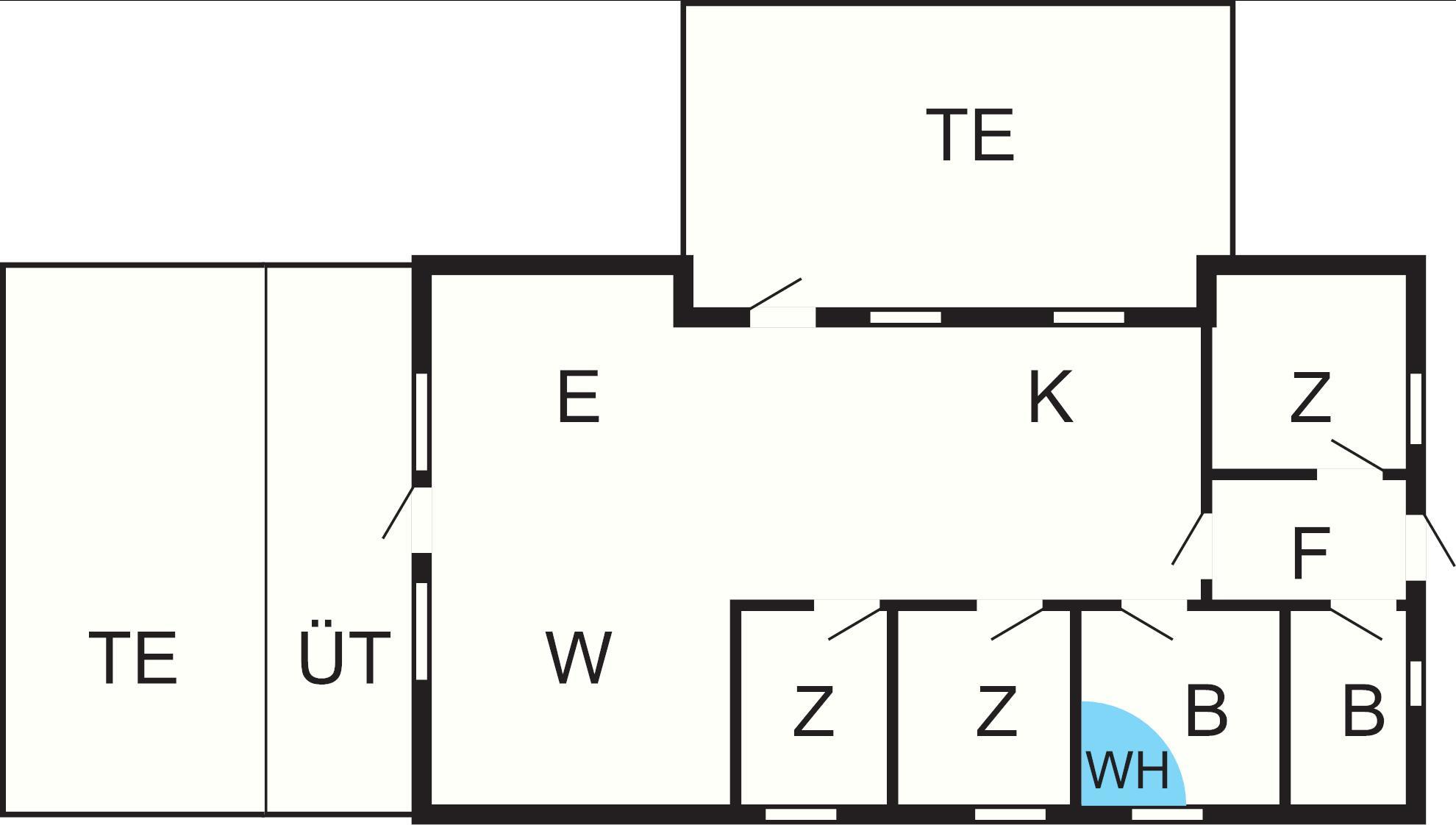 Bad: Waschm, Trockner, WC, Waschb., Dusche, Fußbodenheiz.