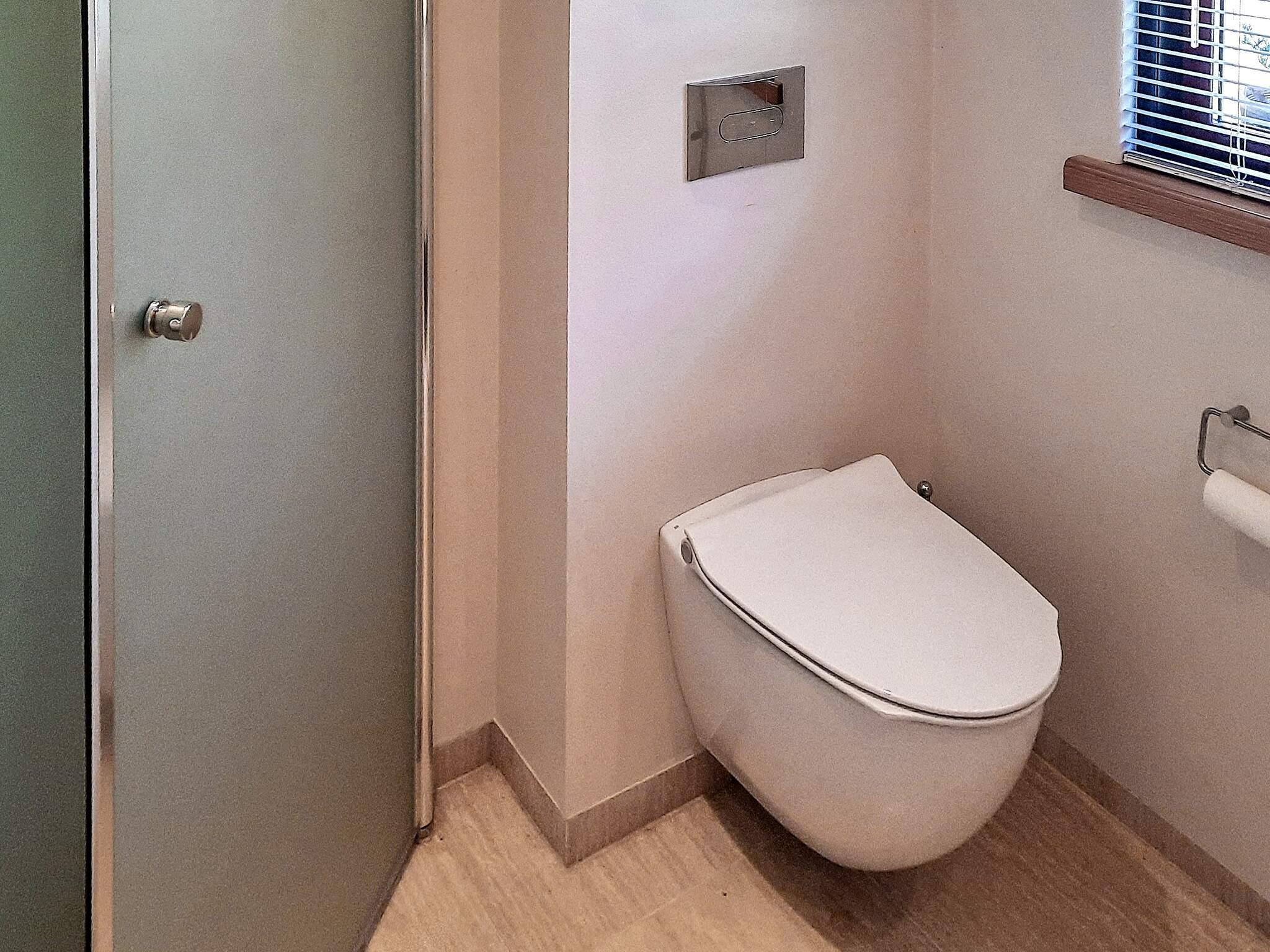 Bad: Waschm., WC, Waschb., Dusche, Fußbodenheiz.