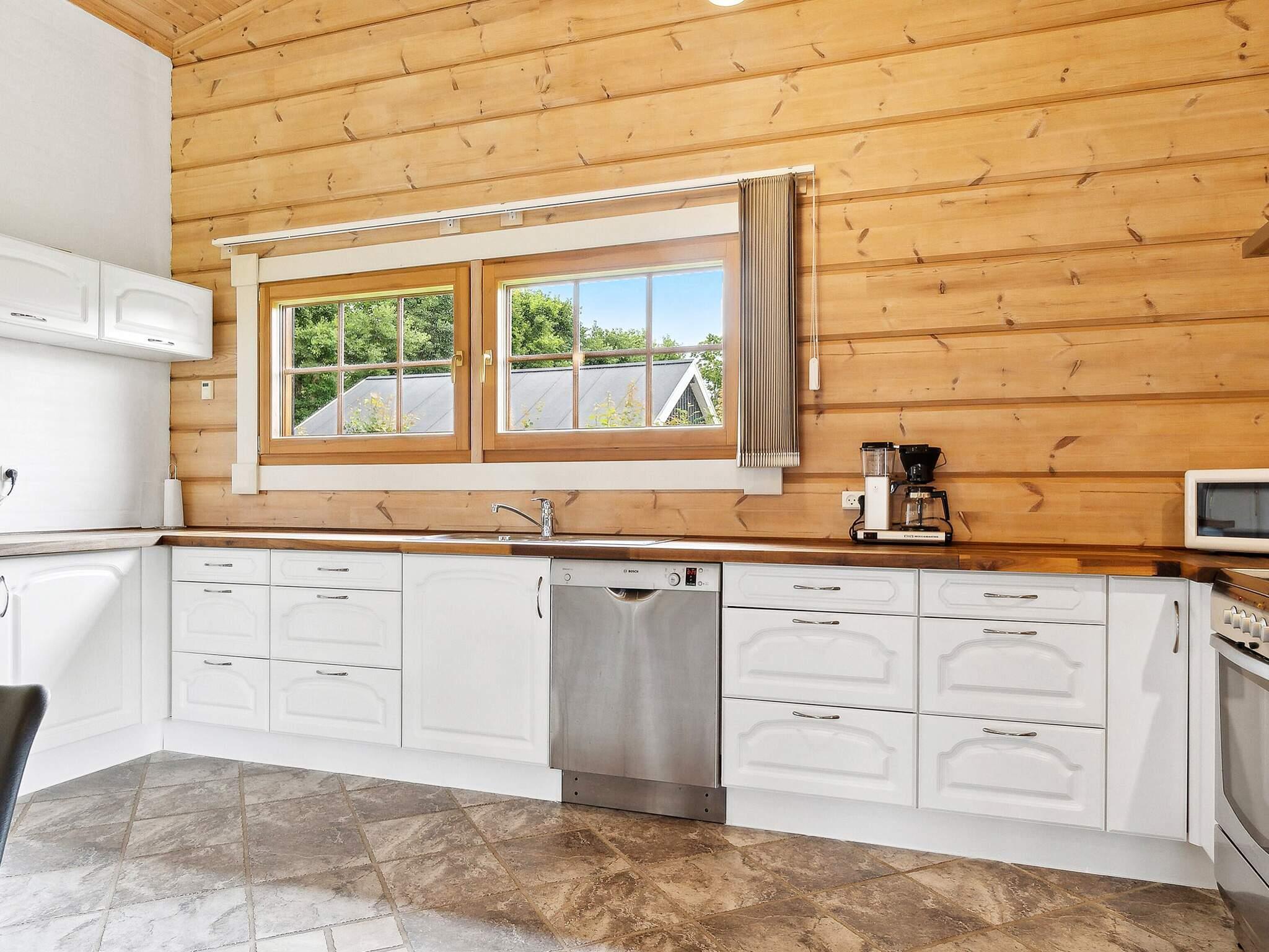 Ferienhaus mit viel Platz und Whirlpool im Bad. Großes und geräumiges Wohnzimmer mit Essbereich, der in offener Verbindung zur hellen Küche steht. Angenehme Fußbodenheizung im Haus. Ein großes Badezimmer mit Whirlpool und Dusche. Darüber hinaus zwei Zimmer mit Doppelbetten und ein Hauswirtschaftsraum mit Waschmaschine und Wäschetrockner.