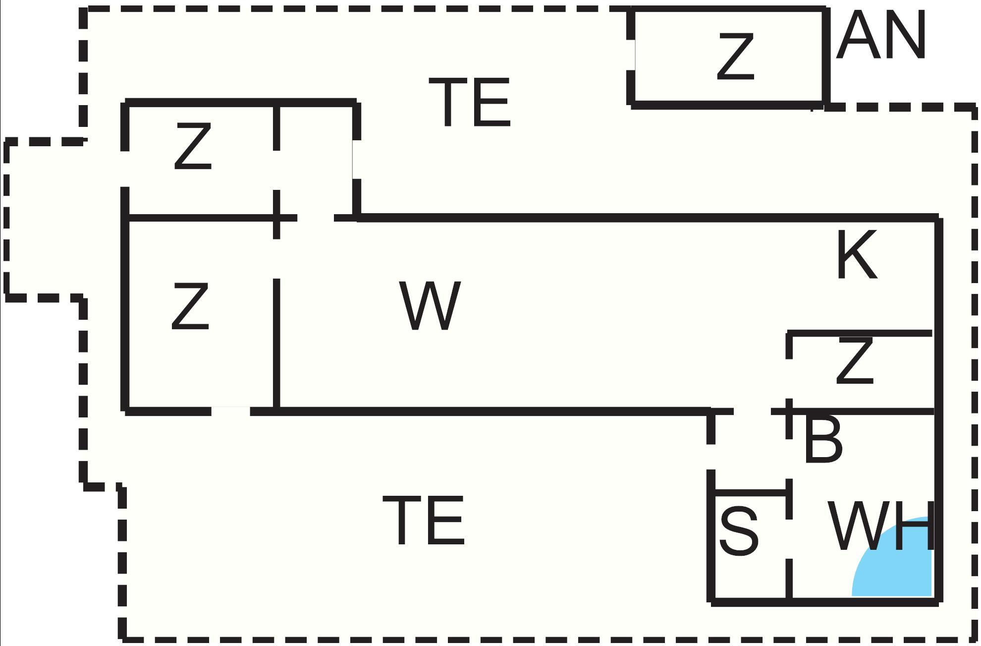 Bad: WC, Waschb., Dusche, Fußbodenheiz.