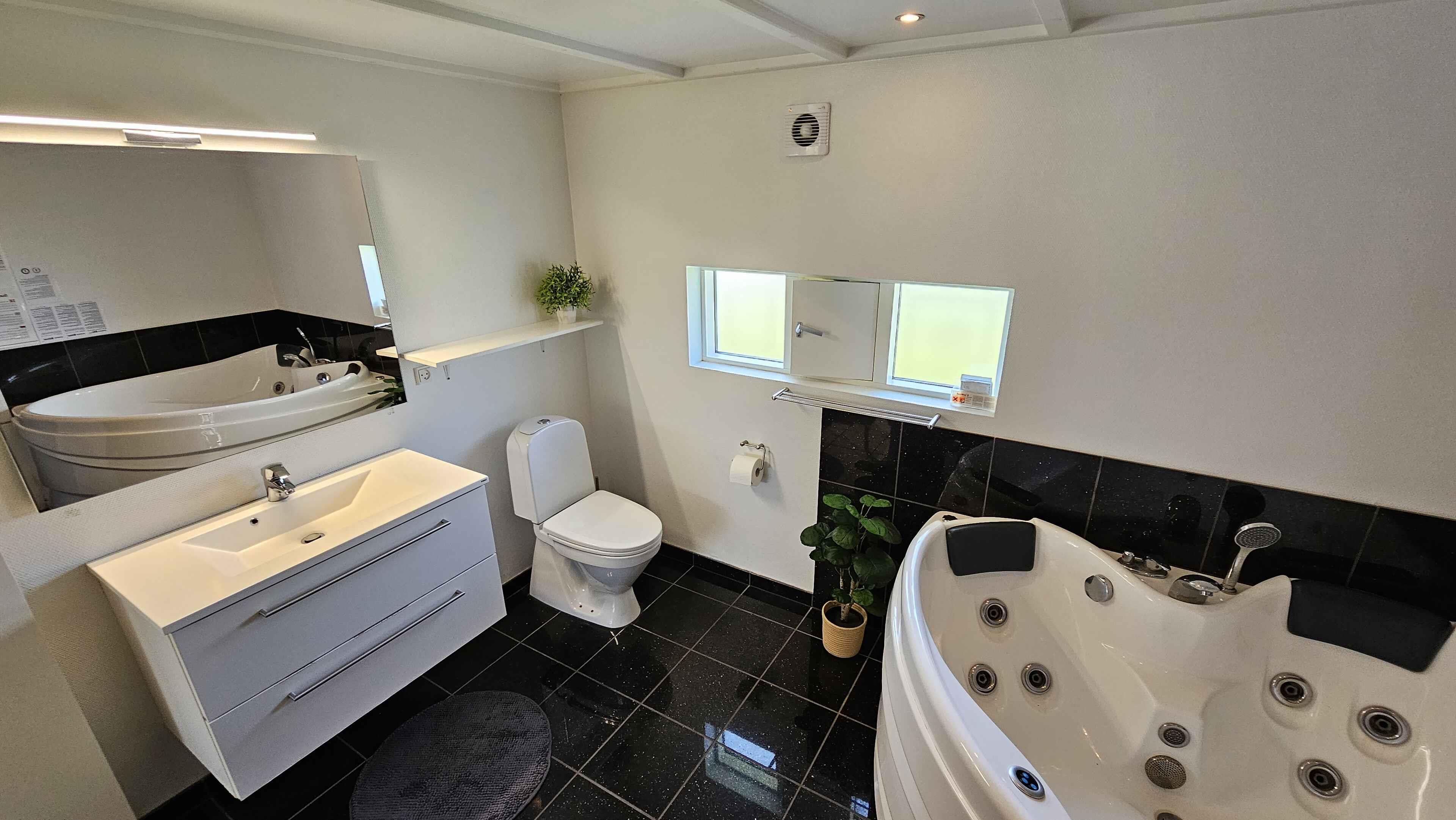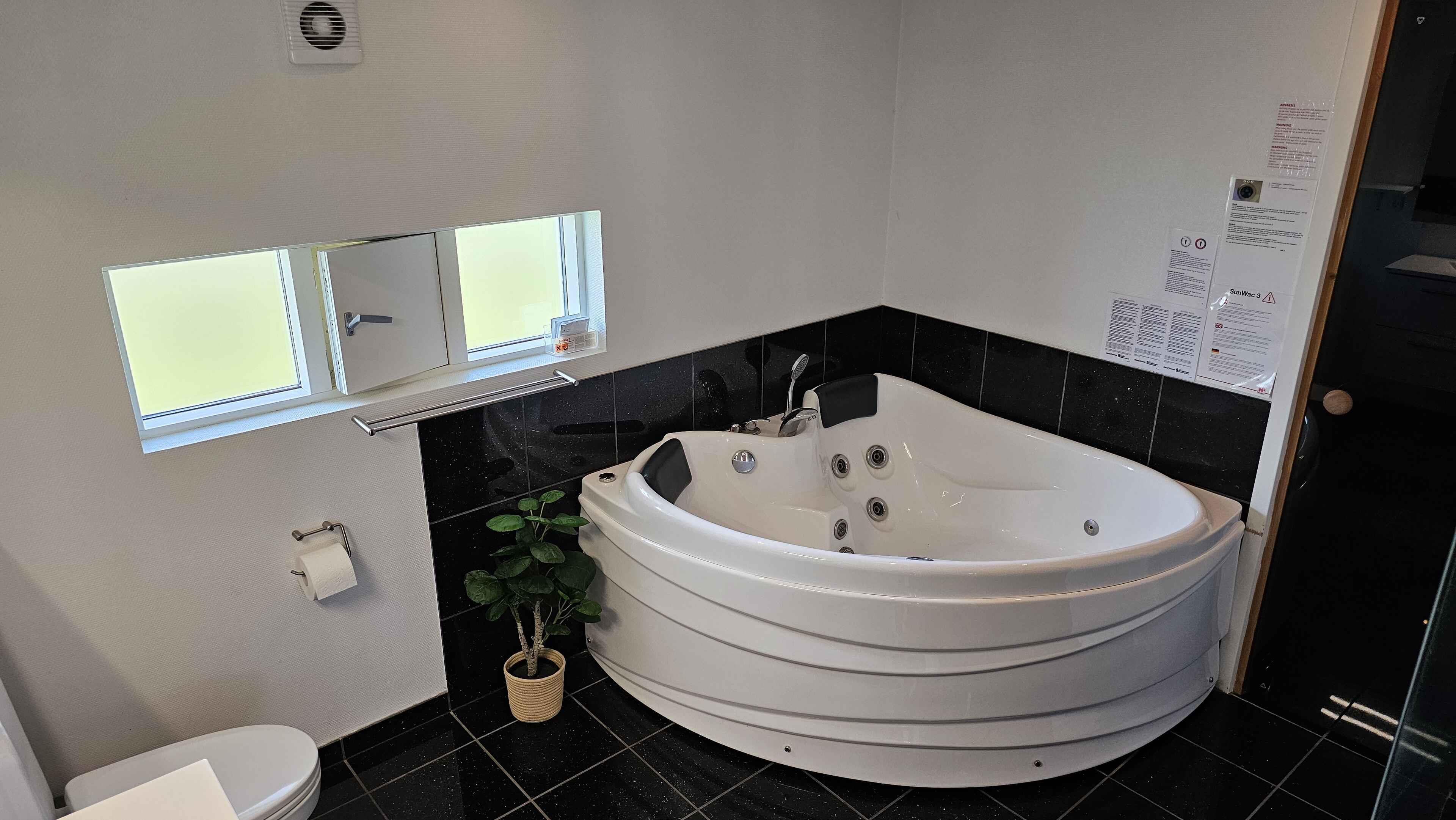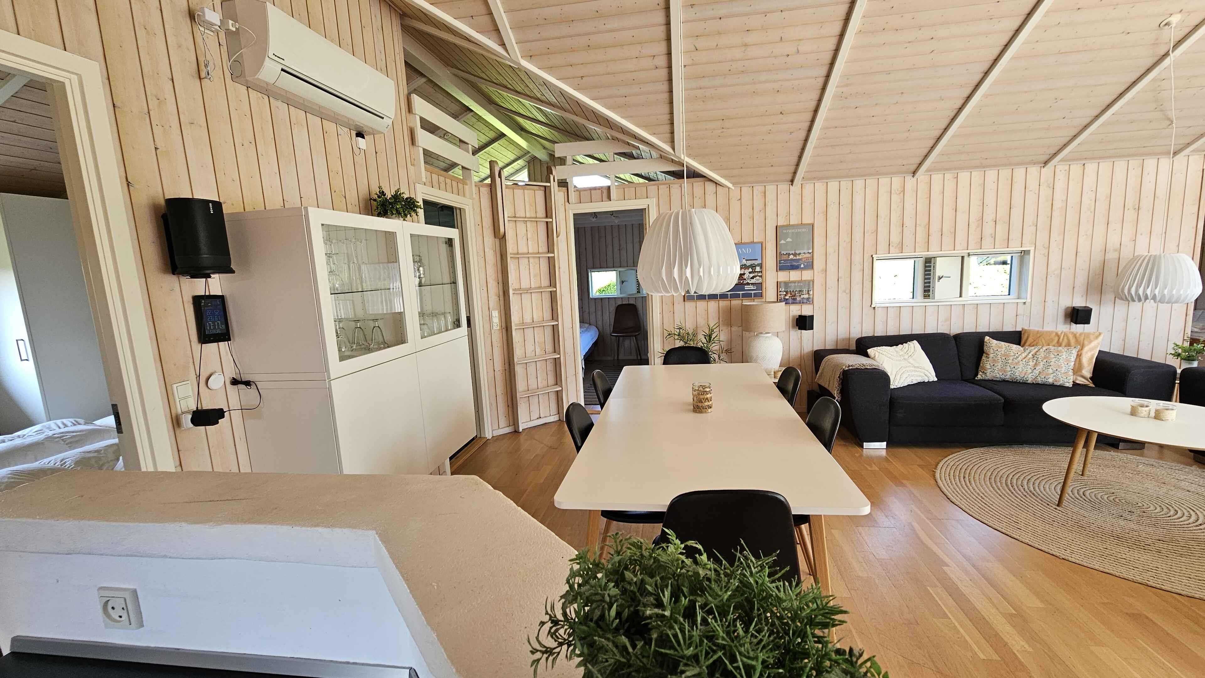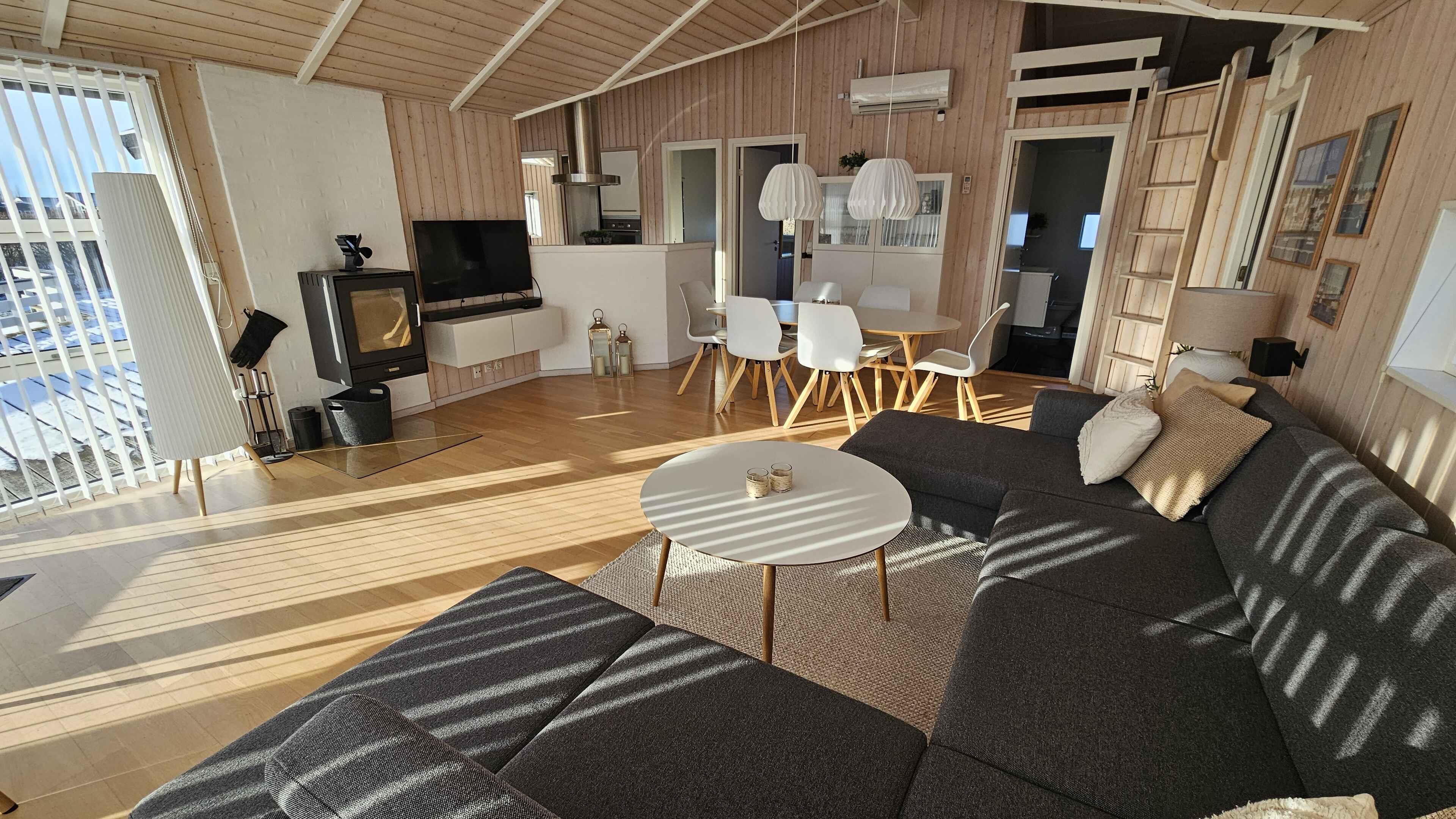 Helles und modernes Ferienhaus mit Whirlpool im beliebten Ferienhausgebiet bei Skovmose, das für seinen schönen kinderfreundlichen Sandstrand bekannt ist. Das Sommerhaus ist geschmackvoll eingerichtet und eignet sich für den anspruchsvollen Mieter, der Wert auf Qualität legt – Ihr zweites Zuhause. Es gibt eine gepflegte Eingangshalle mit Waschmaschine und Trockner, eine große, helle und offene Küche/Esszimmer mit gewölbten Decken und direktem Zugang zur großen, teilweise überdachten Terrasse. Wohnzimmer mit Fernseher mit dänischen und deutschen Kanälen. Hier können Sie über den installierten Chromecast auch einen guten Film streamen, denn im Haus gibt es einen 1Gbit-Internetanschluss. Alternativ können Sie den Fernseher ausschalten und es sich mit einem guten Buch vor dem knisternden Holzofen gemütlich machen. Es gibt drei gute Schlafzimmer mit viel Stauraum sowie eine gemütliche Nische im Wohnzimmer und einen Dachboden, wo die Kinder herumtollen und ihr eigenes „Zuhause“ einrichten können. Es gibt zwei Badezimmer mit Duschen, eines davon verfügt außerdem über einen köstlichen Whirlpool für zwei Personen und direkten Zugang zur Sauna des Hauses. Im großen Garten gibt es viel Platz für Ballspiele und Spiele, außerdem gibt es einen Sandkasten. Die Beheizung des Hauses erfolgt über eine sparsame und energiesparende Wärmepumpe. Das Haus wird NICHT an Jugendgruppen vermietet! Achtung: Wird nicht für gewerbliche Nutzung vermietet.