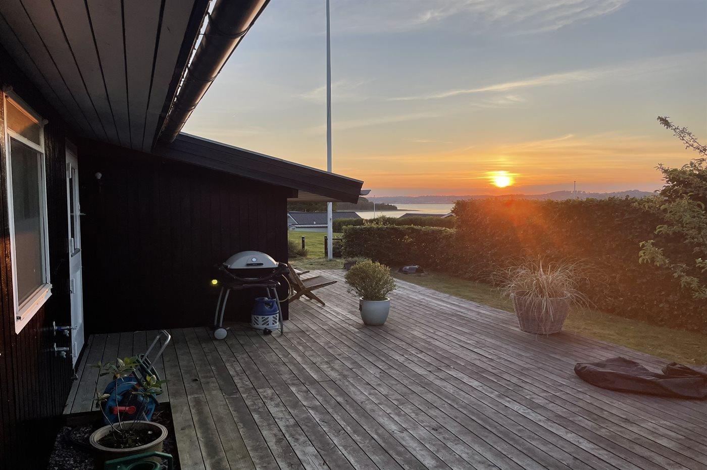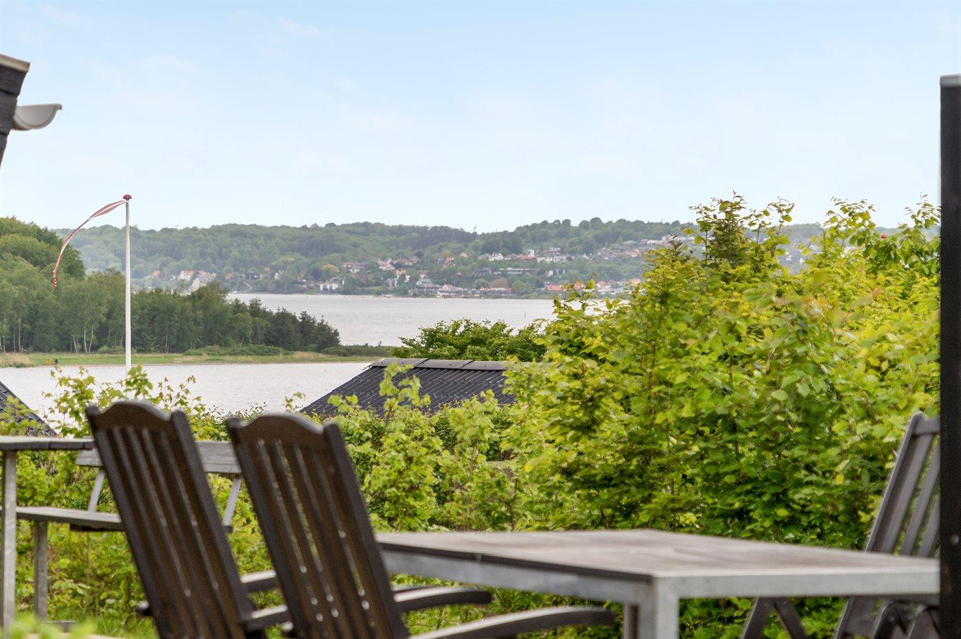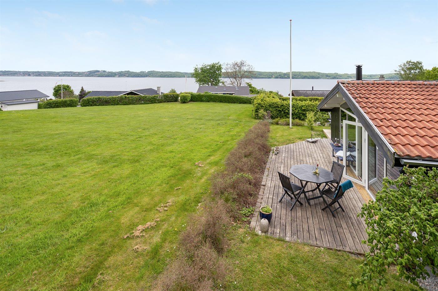 Das Haus liegt auf einem teilweise geschützten Grundstück am Ende einer Sackgasse und von den herrlichen Terrassen rund ums Haus haben Sie einen wundervollen Ausblick auf den Fjord.