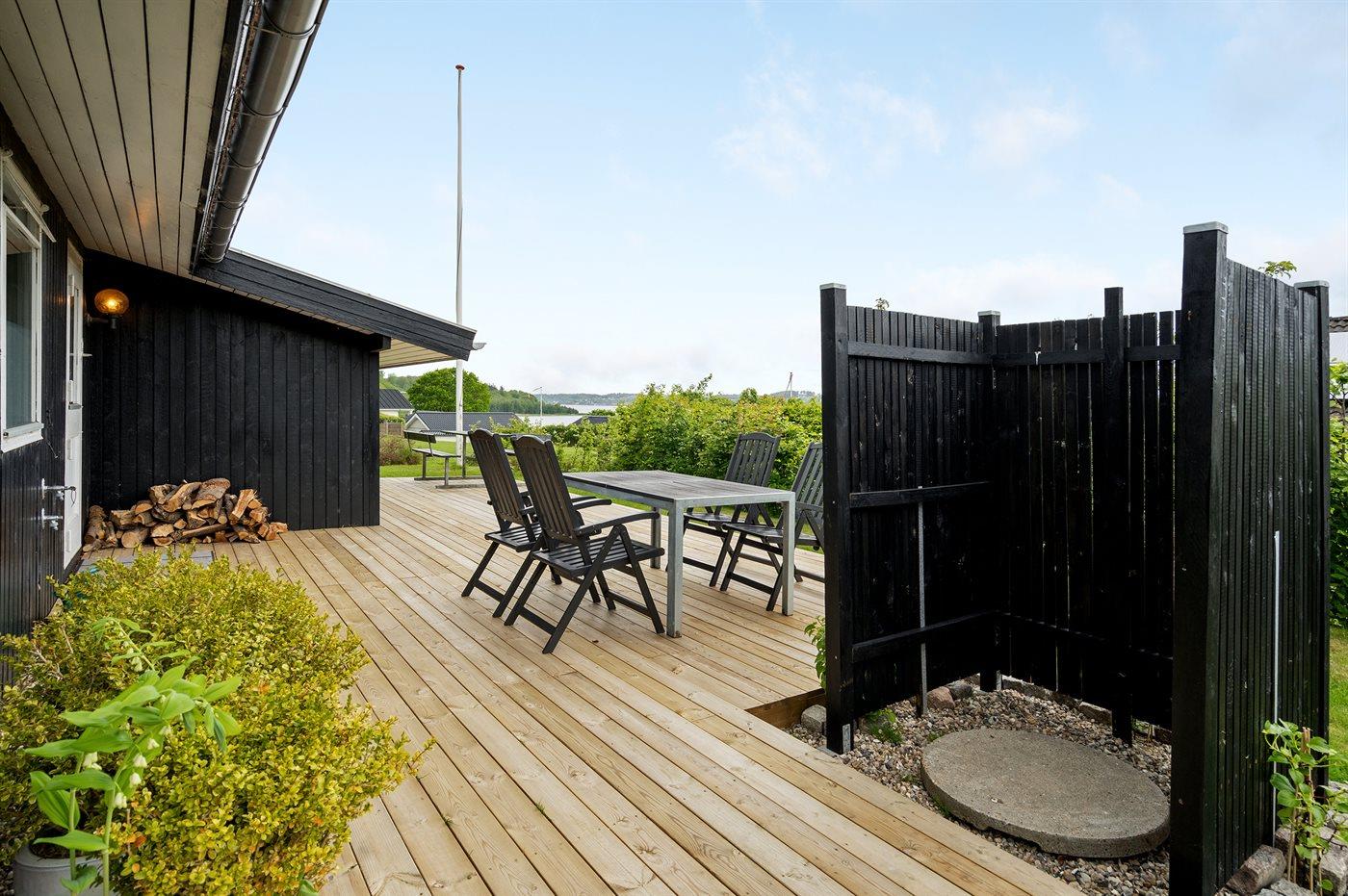 Die Ferienunterkunft liegt auf einem 500 m² großen Gartengrundstück. Die Entfernung zum Fjord beträgt 100 m. Die nächste Einkaufsmöglichkeit liegt 3000 m entfernt. Es steht ein 32 m² Terrassenareal zur Verfügung. Außerdem gibt es 33 m² überdachte Terrasse. Geräteraum. Parkplatz auf dem Grundstück.