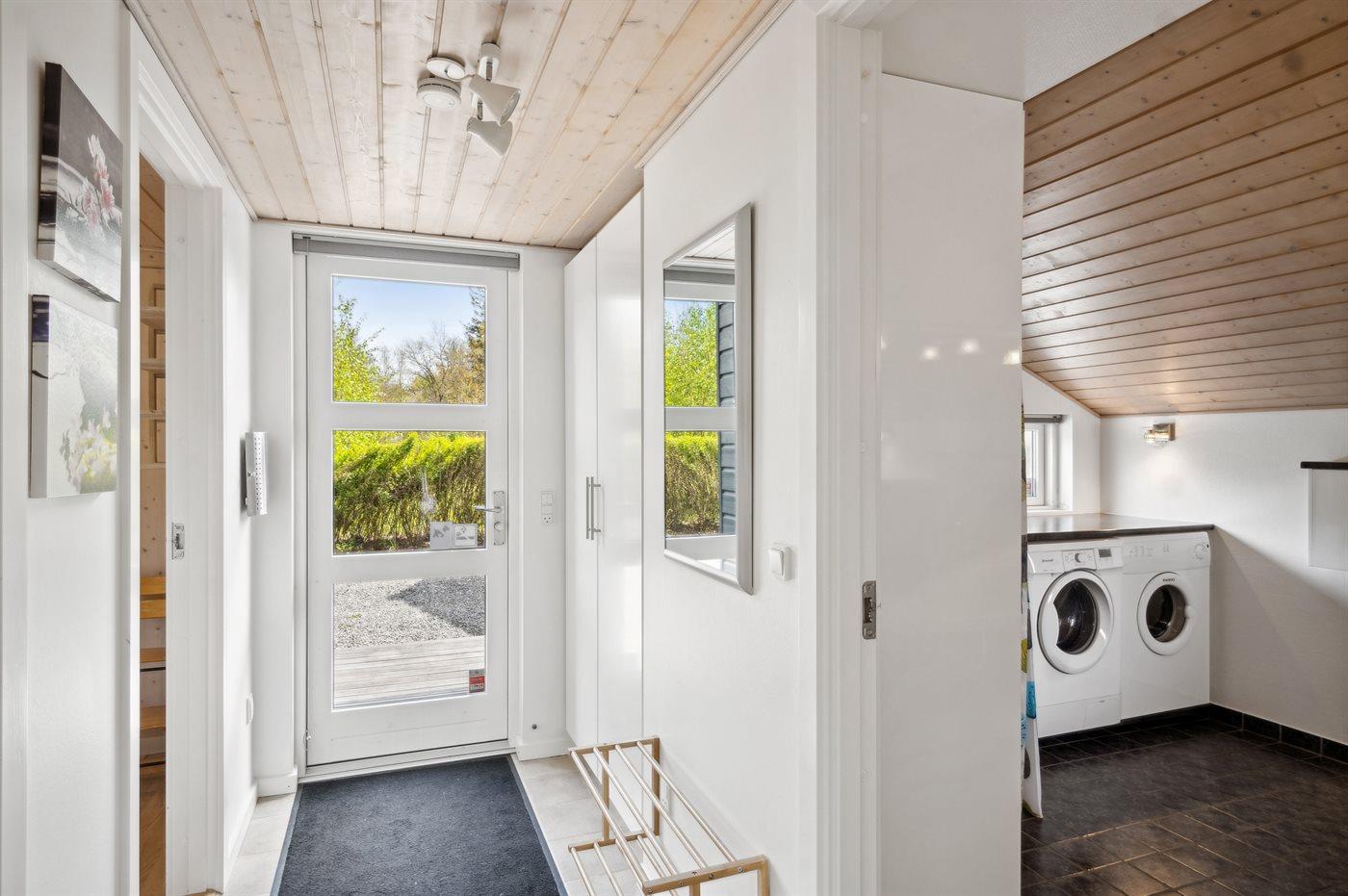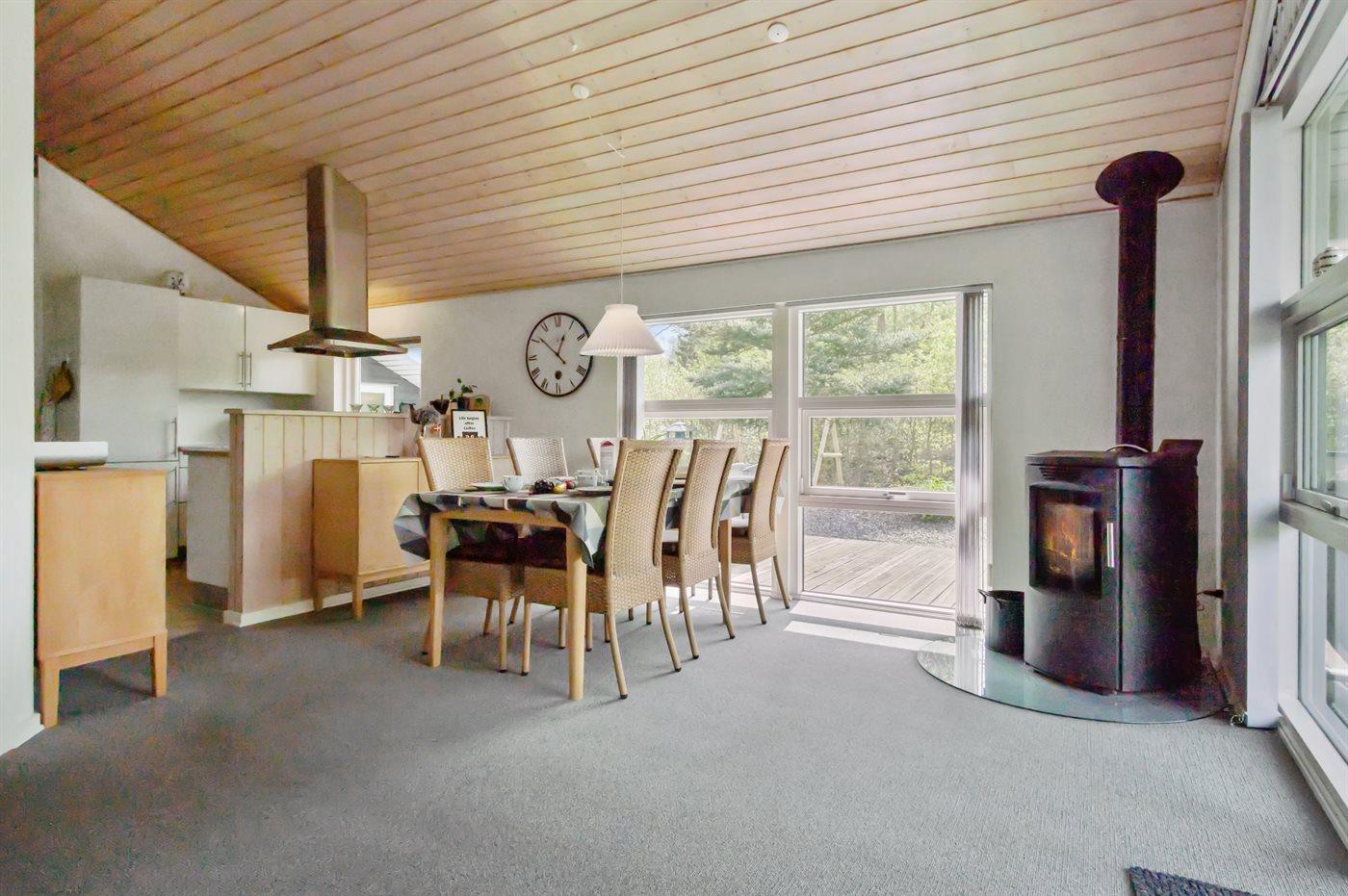 Das Haus ist gepflegt und gut eingerichtet mit einem hellen und gemütlichen Wohnzimmer mit Holzpelletofen und Zugang zur Terrasse, einer großen Wohnküche mit Decken bis zum First, drei guten Schlafzimmern und einem offenen Obergeschoss sowie einem großen Badezimmer mit Fußbodenheizung und Duschnische.