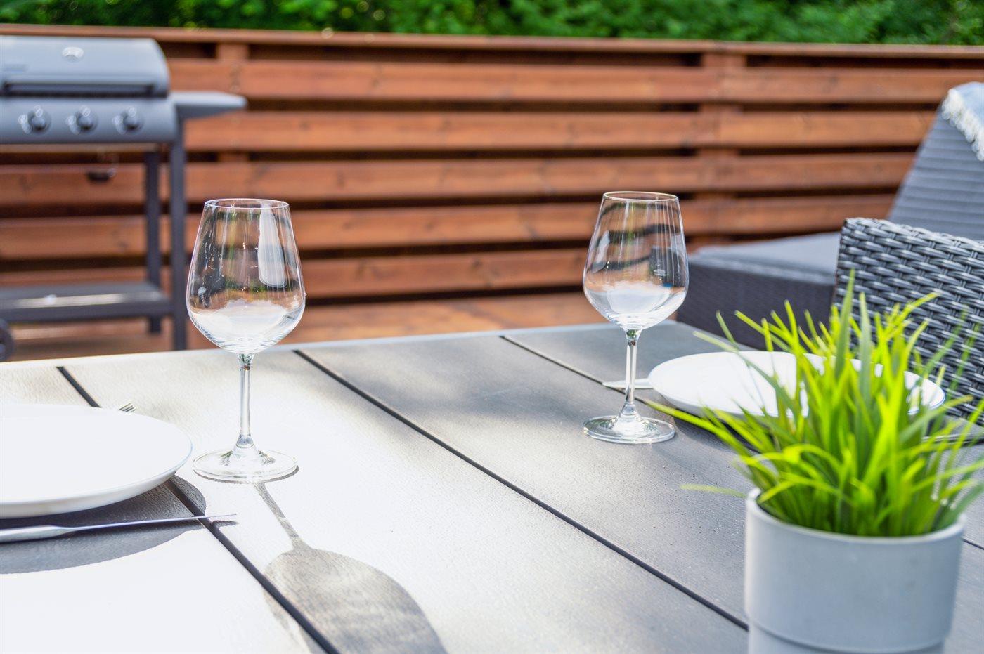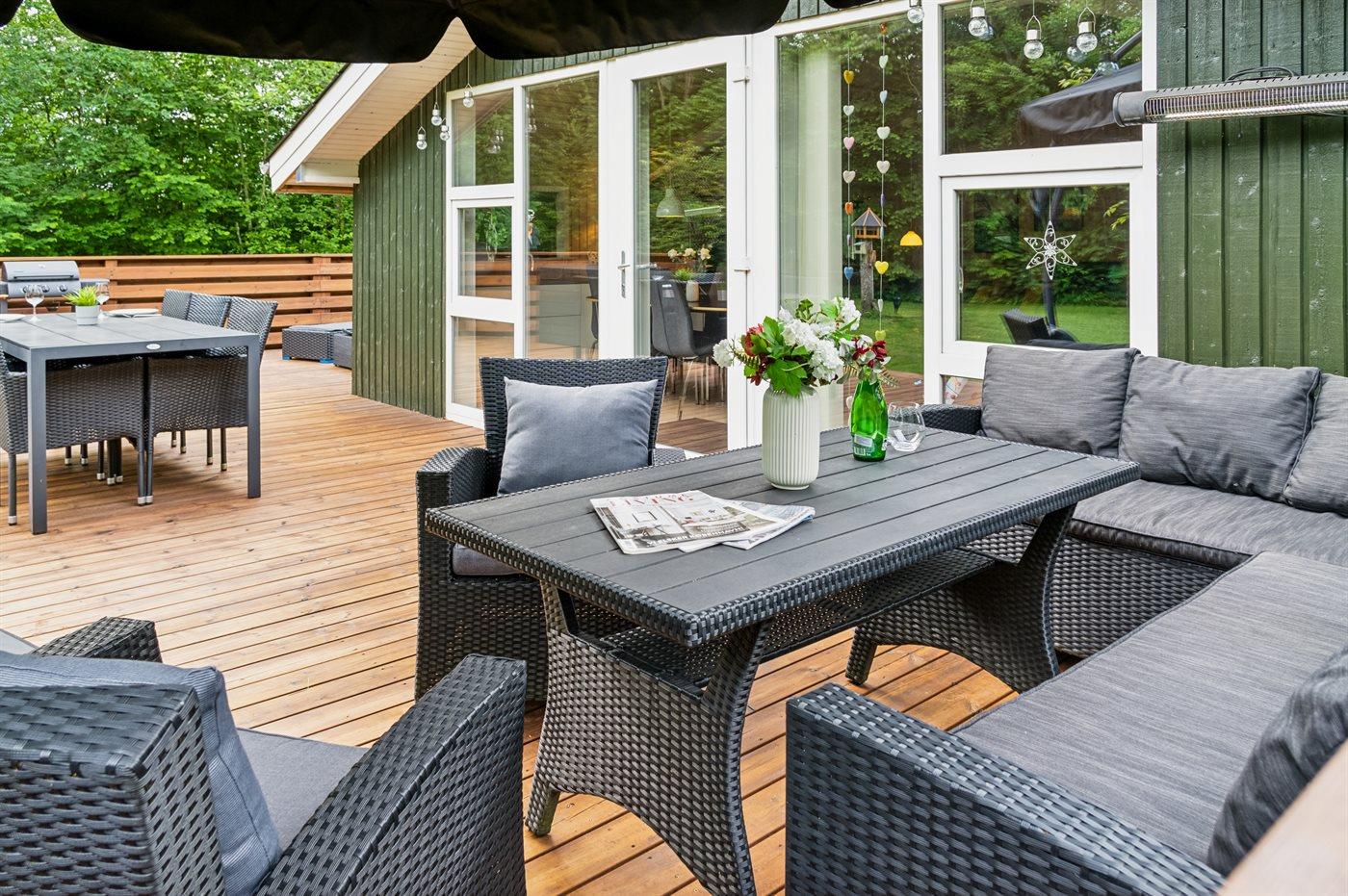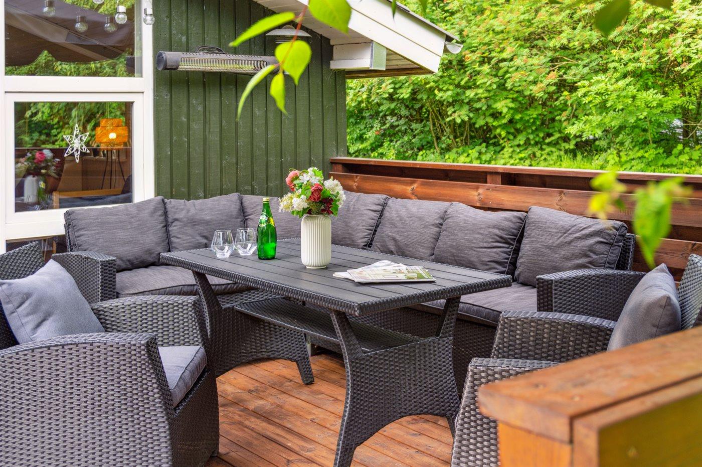 Schönes und gut eingerichtetes Haus auf einem herrlichen Grundstück. Auf der großen Terrasse gibt es viel Platz zum Entspannen und Spielen.