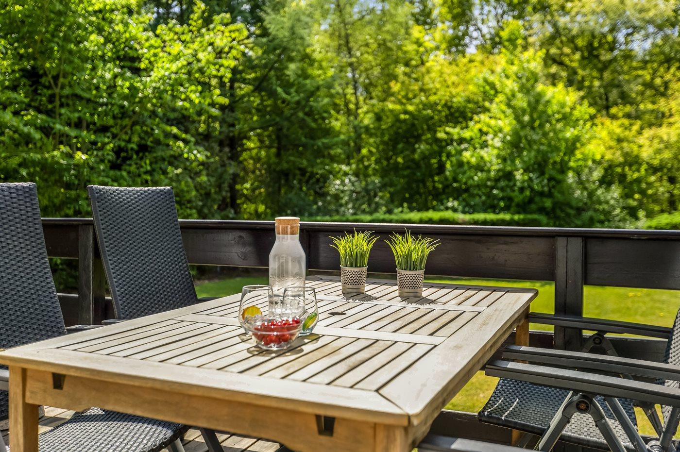 Gemütliches und geräumiges Ferienhaus mit einem schönen Garten, in dem du den Anblick der Waldtiere genießen kannst.