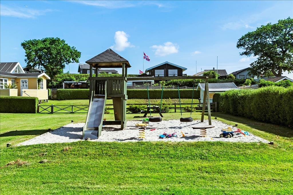 Direkt hinter dem hinteren Garten liegt ein schöner Spielplatz, der das Herz eines jeden kleinen Kindes höher schlagen lässt. Hier gibt es eine Bocciabahn und Tore, sodass unterhaltsamen Familienaktivitäten absolut nichts im Wege steht. Sie wohnen in der beschaulichen Ferienhauskolonie As Hedegaard, die mit einer schön ruhigen, entspannten Urlaubsstimmung zu überzeugen weiß. Lediglich 300 Meter trennen Ihr Ferienhaus von einem der besten Badestrände Ostjütlands. Empfehlen möchten wir Ihnen auch einen Abstecher in den Hafenort Juelsminde, der per Pkw binnen 5 Minuten erreicht ist. Juelsminde lockt mit einem stimmungsvollen, wunderbar maritimen Sportboothafen, mehreren Restaurants, einem Eiskiosk, einer Minigolfanlage und vielem mehr.