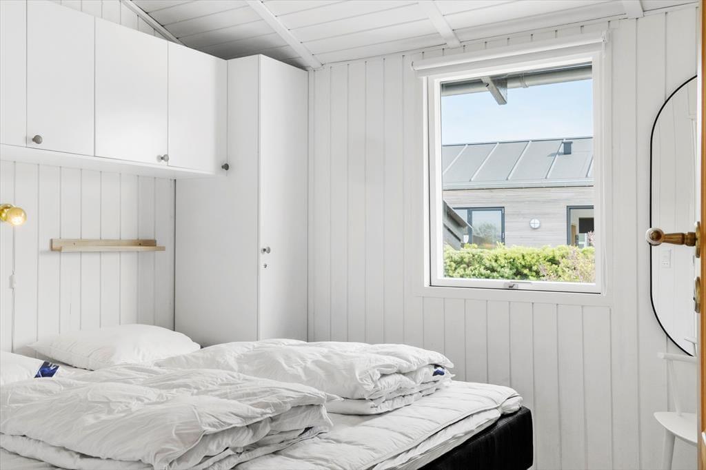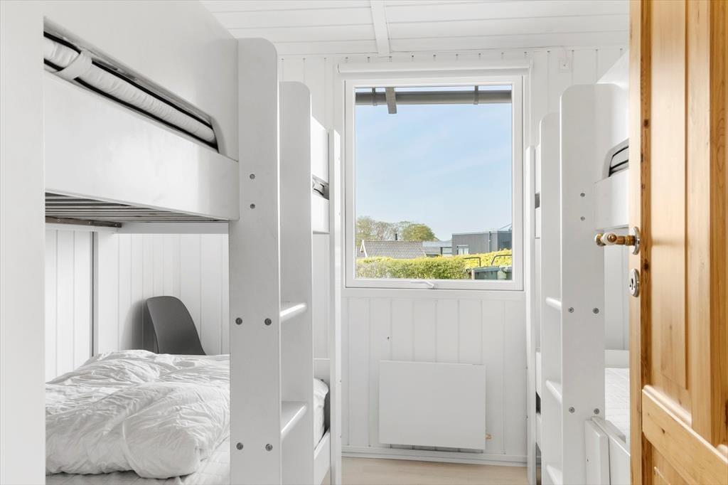 Das Ferienhaus bietet mit seinen drei Schlafräumen ausreichend Platz für bis zu sechs Erwachsene und zwei Kinder. Zwei Schlafräume verfügen über je ein Doppelbett mit guten Boxmatratzen. Im dritten Schlafraum sind zwei Etagenbetten mit guten Matratzen untergebracht. Diese Etagenbetten sind ausgesprochen komfortabel und dienen als vier vollwertige Schlafgelegenheiten. Für die jüngsten Urlauber stehen darüber hinaus auch ein Hochstuhl und ein Kinderreisebett im Haus bereit. Das Badezimmer umfasst eine Fußbodenheizung, eine Dusche und ein WC. Der Hauswirtschaftsraum des Hauses hat auch eine Waschmaschine und einen Trockner.