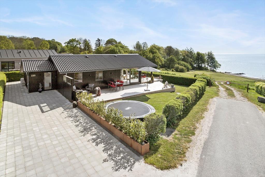 Das Ferienhaus liegt erhöht im Ferienhausgebiet und verzaubert mit einem schönen Panoramameerblick. Auch die Entfernung von nur 100 Metern zum schönen Sandstrand wird Sie begeistern. Zahlreichen erfrischenden Bädern im kühlen Nass und ausgedehnten Strandspaziergängen steht somit das gesamte Jahr hindurch absolut nichts im Wege. Nur 200 Meter abseits des Hauses lockt außerdem ein Spielplatz mit Spielgeräten und viel Platz zum Fußballspielen. Die Umgebung ist von vielen Wegen und Pfaden durchzogen, die Sie durch die schöne Natur führen. Wir empfehlen Ihnen unbedingt einen Spaziergang entlang des Küstenpfades - entweder bis nach Snaptun oder bis nach Juelsminde. Per Pkw erreichen Sie Juelsminde binnen 15 Minuten. Juelsminde ist für den beschaulichen, wunderbar maritimen Hafenbereich, die kinderfreundlichen Strände und den gemütlichen Ortskern mit mehreren interessanten Geschäften, guten Einkaufsmöglichkeiten, Lokalitäten und lokalen Attraktionen bekannt. Im Hafen können Sie sich von der gemütlichen Stimmung der sanft schaukelnden Segelboote verzaubern lassen, frischen Fisch in einem der Restaurants genießen oder sich selber mit einem köstlichen Eis an der Eisbude verwöhnen. Für Unterhaltung und Abwechslung bei Groß und Klein sorgen zudem eine vergnügte Runde Minigolf oder auch das beliebte Krabbenfangen am Badesteg. Alternativ lassen Sie sich einfach in aller Ruhe nieder und genießen die schöne Aussicht und die maritime Atmosphäre. Ein absolutes Muss für Familien ist ein Besuch des ganz neuen Naturspielplatzes am Fuße des Odelsbjeget, der nicht nur mit seinem 8 Meter hohen Spielturm begeistert. Auf dem herrlichen Spielplatz locken neben einer wahren Fülle an Spielgeräten auch Geschicklichkeitsparcours, Bolz- und Multifunktionsplätze sowie zwei ganz neue Paddle-Tennis-Anlagen. Dank des umfangreichen Angebots an Aktivitätsmöglichkeiten werden Sie mit Ihrer Familie auf diesem Spielplatz sicherlich einige aktive, vergnügte Stunden verleben. Passionierte Golfspieler dürfen sich in der Gegend auf einen 18-Loch-Golfplatz freuen. Juelsminde liegt praktischerweise angenehm nah an zahlreichen großen Attraktionen Jütlands, zu denen beispielsweise der beliebte Givskud Zoo und das weltberühmte Legoland gehören.