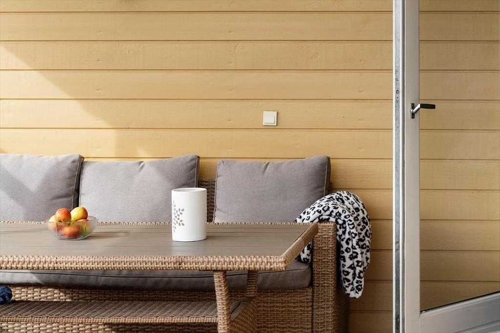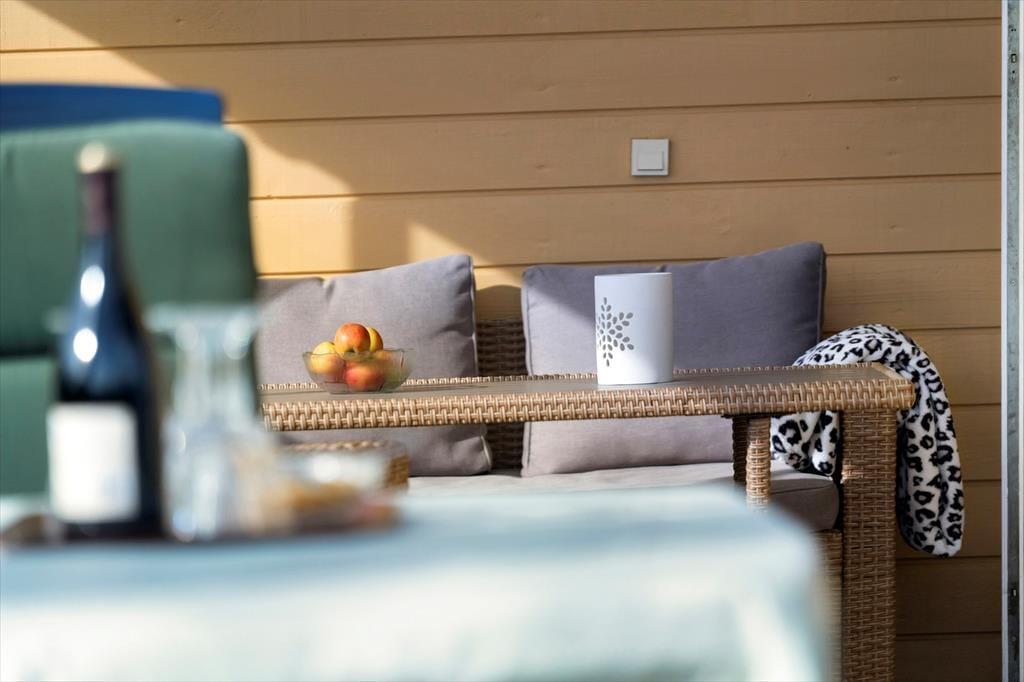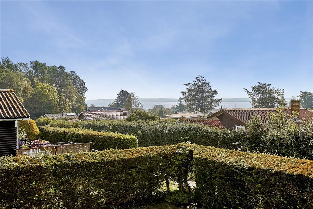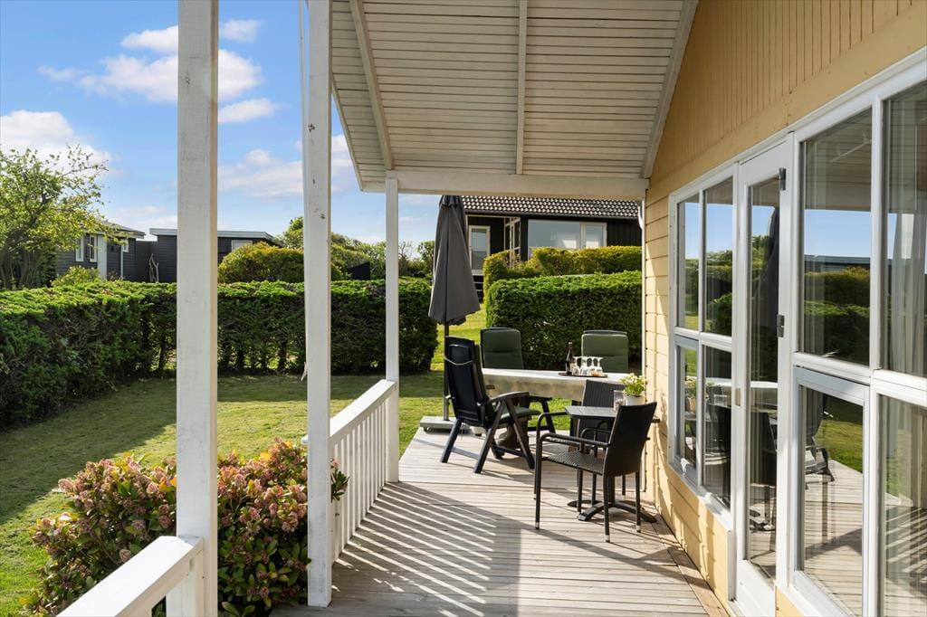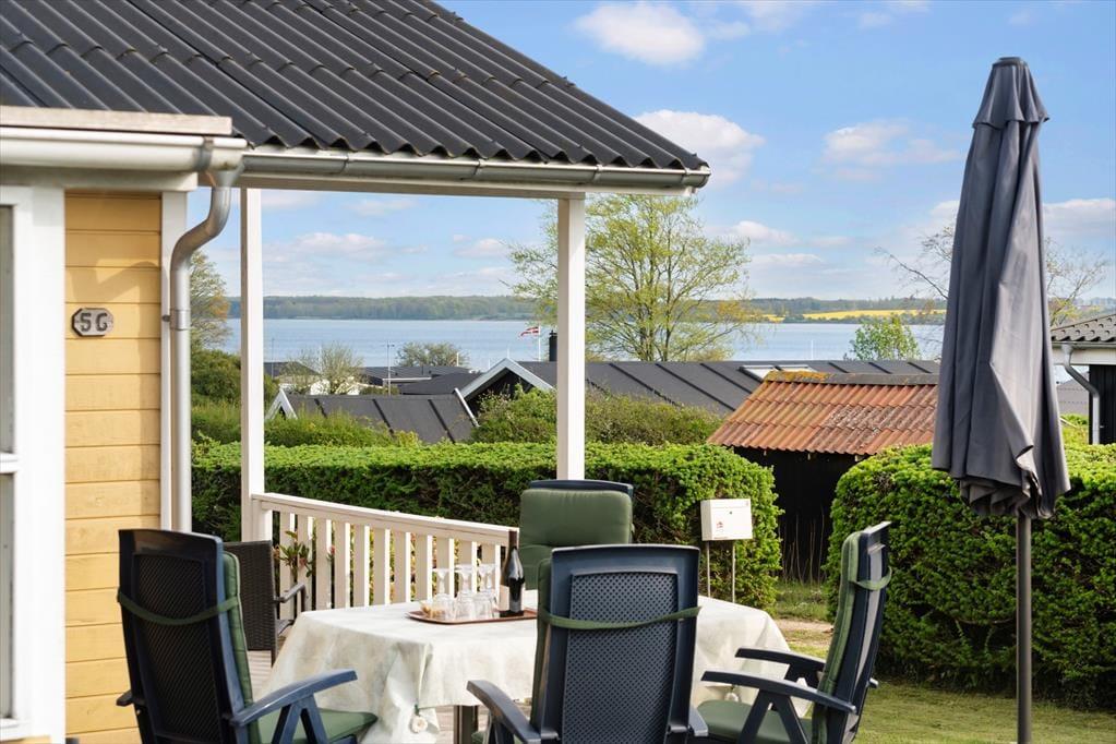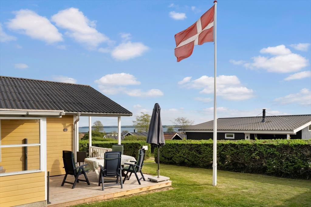 Dieses Ferienhaus ist erhöht, auf einem Grundstück am Ende eines ruhigen Weges, gelegen. Der schöne Garten bietet sich wunderbar für die Kinder zum Spielen an. In Richtung Nord und Ost haben Sie von der Veranda des Ferienhauses Ausblick zum Fjord. An der südlichen Hausseite befindet sich eine überdachte Terrasse.