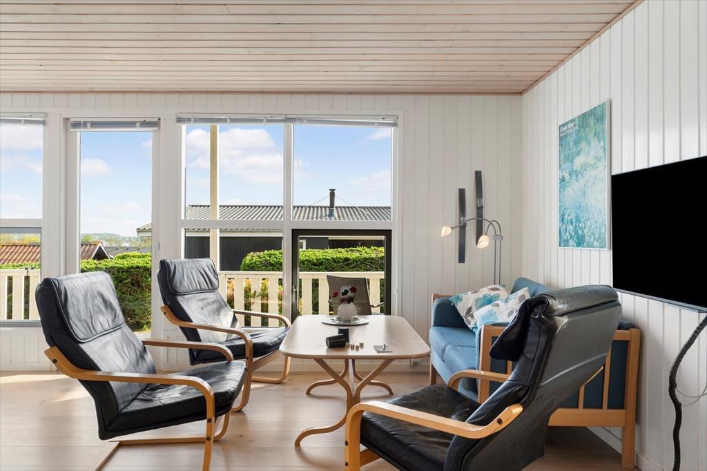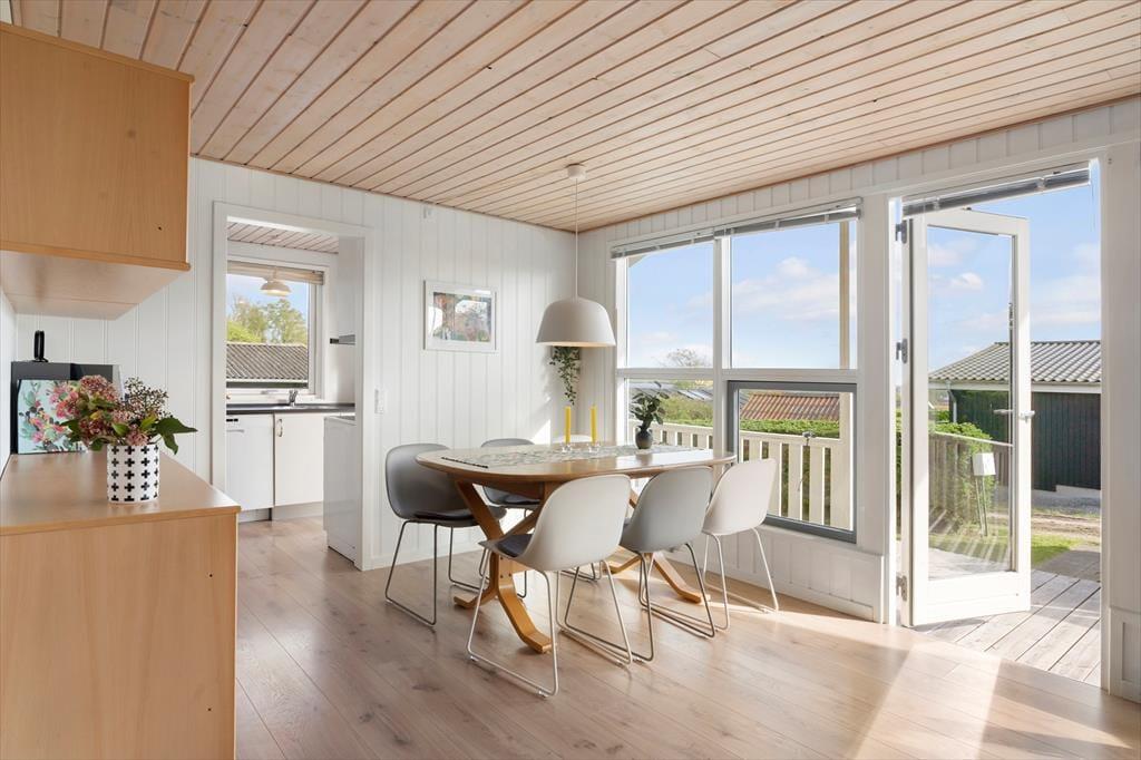 Im hellen und geräumigen Aufenthaltsbereich ist auch der Essplatz untergebracht. Das Wohnzimmer verfügt über einen Fernseher mit deutschen und dänischen Sendern. Die schöne, kleine Küche ist mit einem Geschirrspüler ausgestattet. Die acht Schlafplätze des Hauses verteilen sich auf drei Schlafräume. Im gepflegten Badezimmer befindet sich eine Dusche. Kleiner Hauswirtschaftsraum. Die kleinen Urlauber erwartet ein Kinderstuhl, ein Kinderbett, eine Babybadewanne und eine Wickelauflage. Des Weiteren werden Ihre Kinder vom “Spielhaus” im Garten begeistert sein. Vom Ferienhaus haben Sie das Spielhaus im Blick, sodass Ihre Kinder ungestört spielen können und trotzdem unter Ihrer Aufsicht sind.