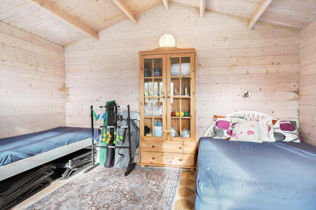 Das Haus verfügt über insgesamt drei Schlafzimmer: Zwei davon sind mit hochwertigen Doppelbetten und großzügigem Stauraum ausgestattet, das dritte mit zwei Einzelbetten und einem Schreibtisch. Die Zimmer sind einladend, mit weiß gestrichenen Holzdecken und -wänden. Im Sommer steht Ihnen auch das Annex zur Verfügung, das sich in unmittelbarer Nähe des Hauptgebäudes befindet und über eine gepflasterte Terrasse erreichbar ist. Für die Unterhaltung in der Umgebung sind im Annex Spiele und Aktivitäten vorhanden.