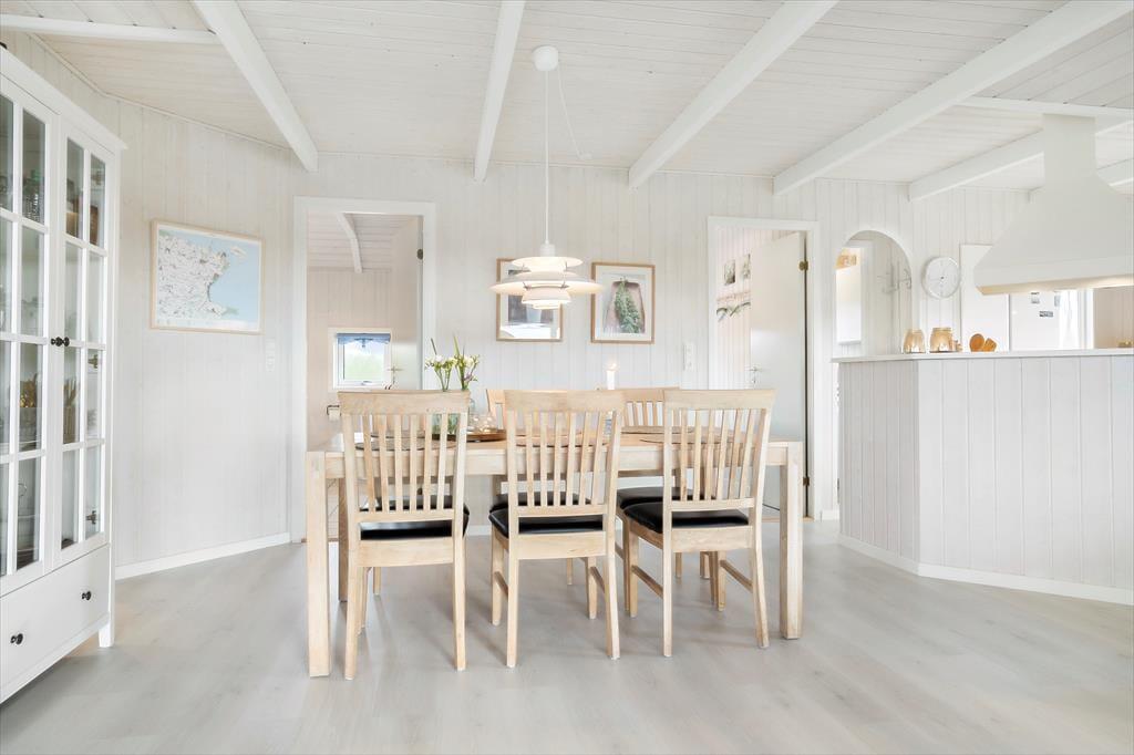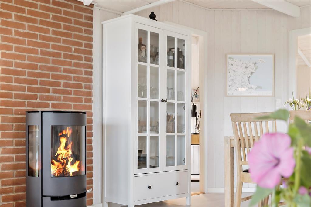 Durch die großen Fenster im Ess- und Wohnzimmer blicken Sie auf die Terrasse und den Garten. Im Wohnzimmer lädt das bequeme Sofa zum Zusammensitzen bei einem Spiel oder zum Fernsehen ein. Der Fernseher bietet dänische, deutsche und skandinavische Kanäle sowie Chromecast für eigene Streaming-Inhalte. Kostenloses WLAN ist vorhanden. Ein zentral platzierter Holzofen sorgt in den kühleren Monaten für Wärme und Atmosphäre. Außerdem ist das Haus mit Fußbodenheizung und Wärmepumpe ausgestattet.