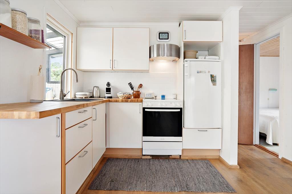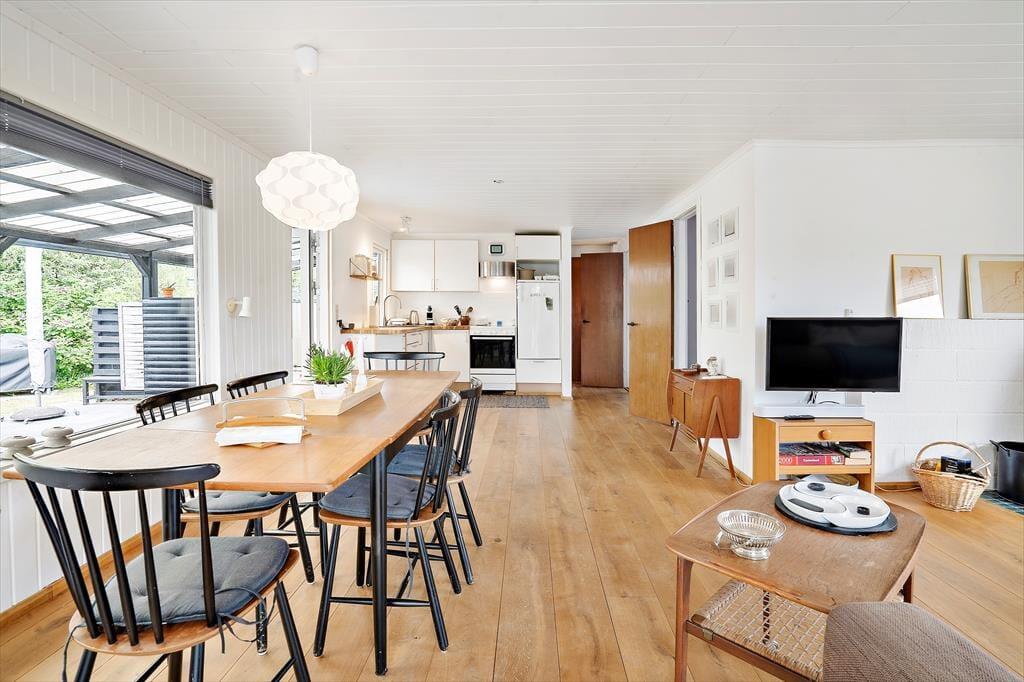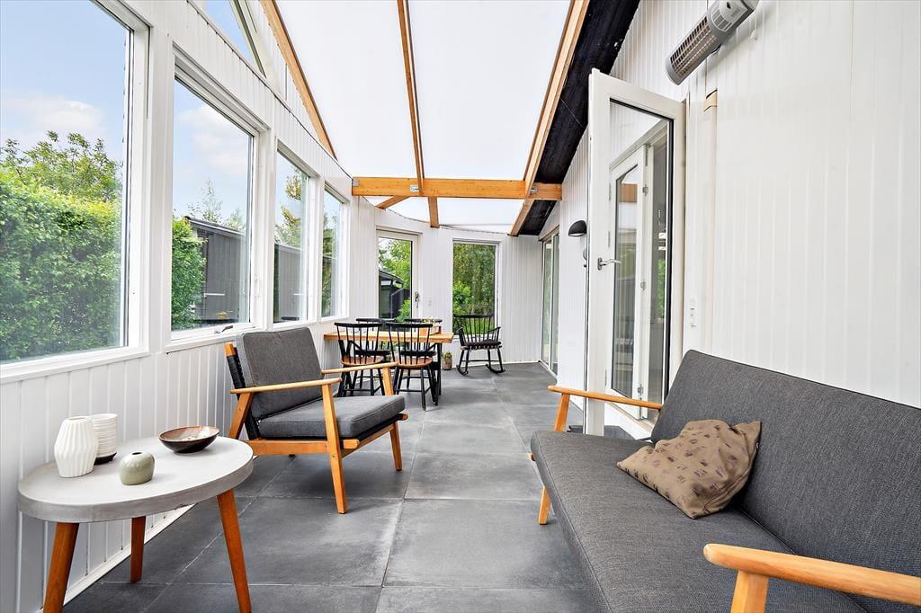 Das Ferienhaus hat ein helles und einladendes Wohnzimmer, das zur Küche hin offen ist. Im Wohnzimmer können Sie es sich vor dem Holzofen gemütlich machen und das schöne Licht des Gartens genießen oder die Familie zu einem Brettspiel oder einem guten Essen versammeln. Vom Wohnzimmer aus haben Sie direkten Zugang zum gemütlichen Wintergarten, der dazu beiträgt, die Sommermonate bis in den Herbst hinein zu verlängern. Außerdem verfügt das Ferienhaus über zwei gute Schlafzimmer und ein schönes Badezimmer.