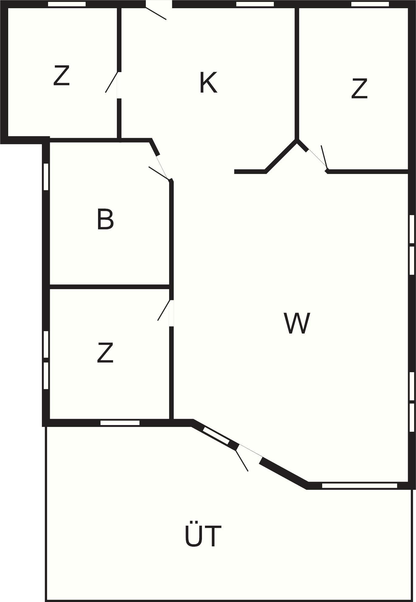 Bad: WC, Waschb., Dusche, Fußbodenheiz.
