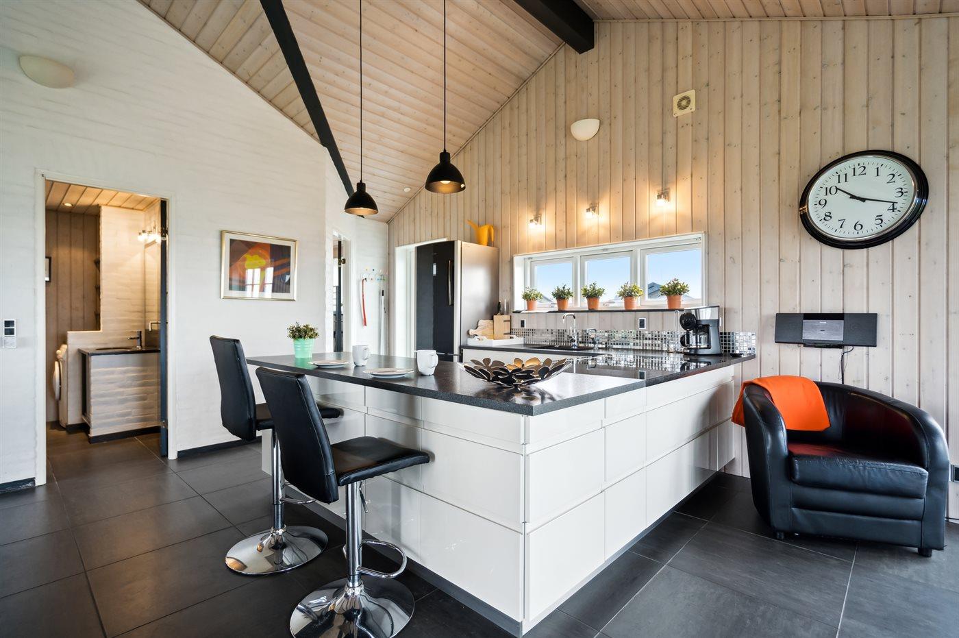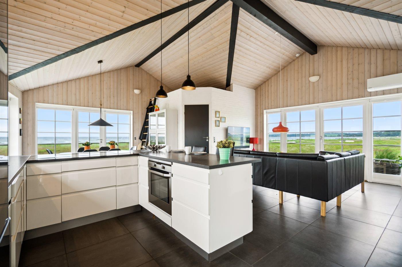 Das Ferienhaus tritt hell und modern hervor und ist gut eingerichtet, so dass es perfekt für eine Familie mit 2-3 Kindern geeignet ist. Es verfügt über eine große Wohnküche, von wo aus du die Aussicht auf das Wasser genießen kannst. Auch von 2 der Schlafzimmer hast du Aussicht auf das Wasser.