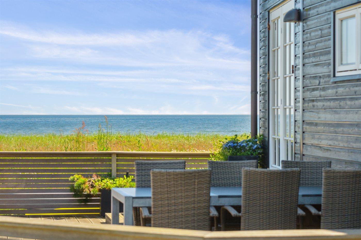 Modernes Ferienhaus mit 180°-Meerblick und direktem Zugang zum kinderfreundlichen Sandstrand.