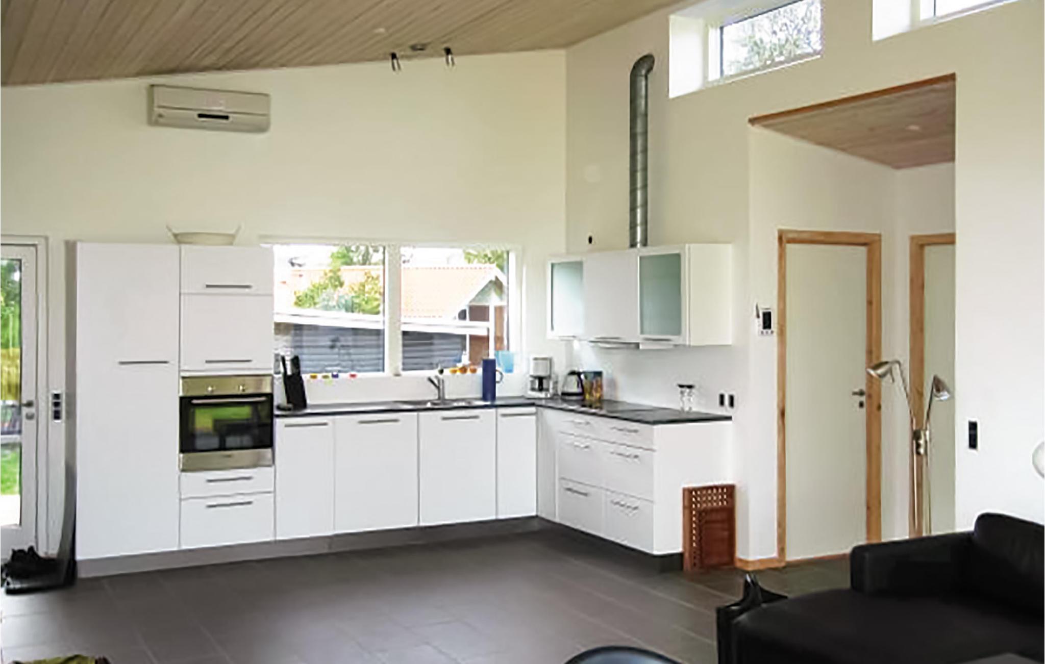Hier hat der Architekt ein eindrucksvollen Ferienhaus mit Aussicht auf das Meer geschaffen. Angenehme Gartenmöbel erwarten Sie auf der Terrasse. Im Wohnzimmer ist es durch die hohe Decke sehr gemütlich. Die Küche ist voll ausgestattet, es gibt auch gute Schlafzimmer. Eines ist mit Stockbetten als Kinderzimmre ausgerichtet, so können die Kinder vor dem Schlafen gehen eine gemütlich Zeit plaudernd verbringen. Juelsminde liegt in der Nähe. Erleben Sie die charmante Atmospäre im Jachthafen oder auf der Fußgängerzone. Sie können hier die Insel Hjanø mit einer Fähre von Snaptun entdecken, abwechslungsreiche Fischgründe finden und mit Ihren Kindern einen Abstecher ins 45 Autominuten entfernte Legoland machen.