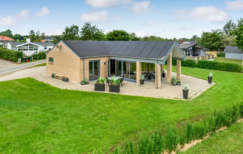 Modernes Ferienhaus mit Meerblick, Sauna und Whirlpool nahe Juelsminde in Dänemark.