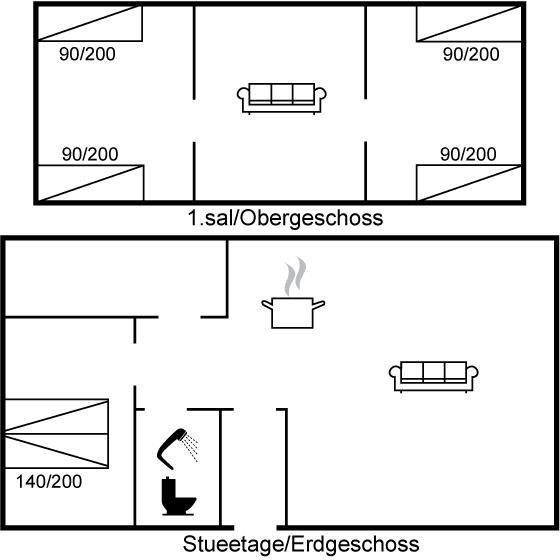Die Schlafplätze verteilen sich auf 3 Schlafräume. 2 Schlafplätze in einem Doppelbett. 4 Schlafplätze in Einzelbetten.